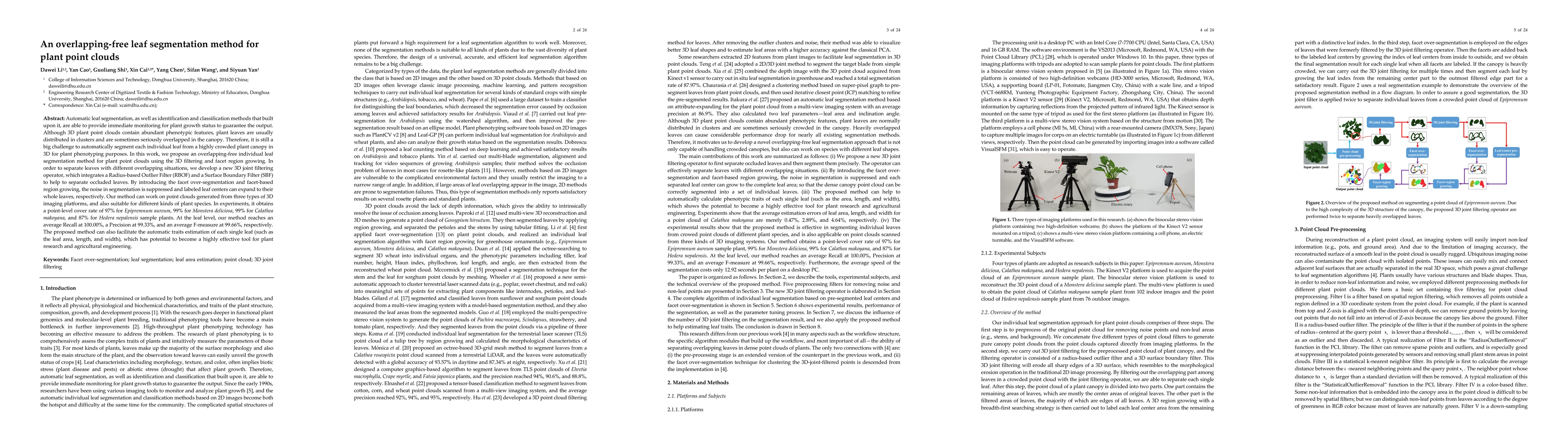 This paper proposes an overlapping-free leaf segmentation method for plant point clouds using 3D filtering and facet region growing. The method employs a new 3D joint filtering operator combining Radius-based Outlier Filter and Surface Boundary Filter to separate occluded leaves, achieving high accuracy in segmentation and facilitating automatic traits estimation for various plant species.