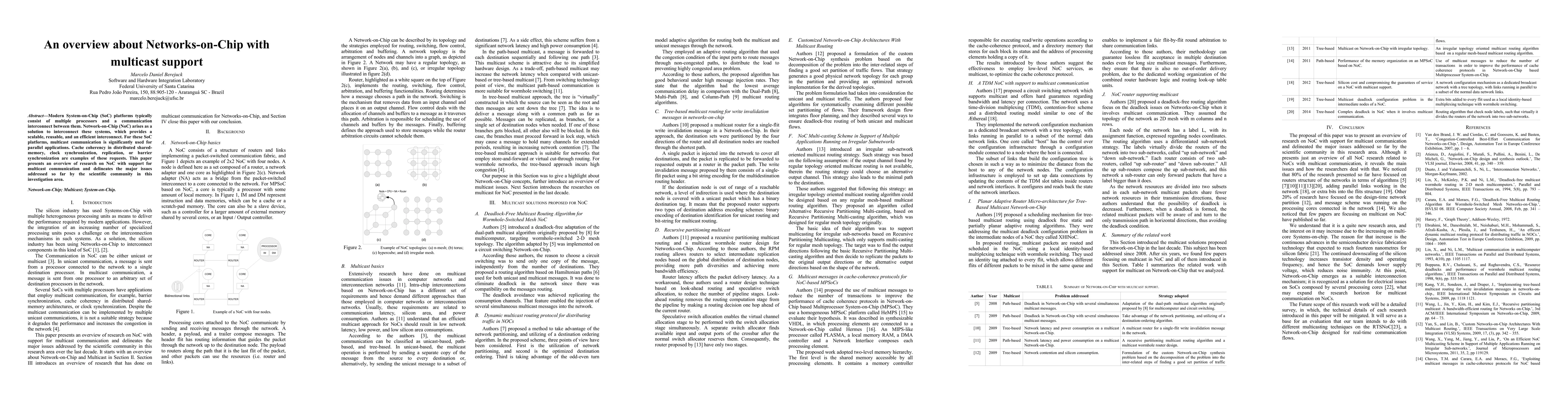 Modern System-on-Chip (SoC) platforms typically consist of multiple processors and a communication interconnect between them. Network-on-Chip (NoC) arises as a solution to interconnect these systems, which provides a scalable, reusable, and an efficient interconnect. For these SoC platforms, multicast communication is significantly used for parallel applications. Cache coherency in distributed sharedmemory,clock synchronization, replication, or barrier synchronization are examples of these requests. This paper presents an overview of research on NoC with support for multicast communication and delineates the major issues addressed so far by the scientific community in this investigation area.
