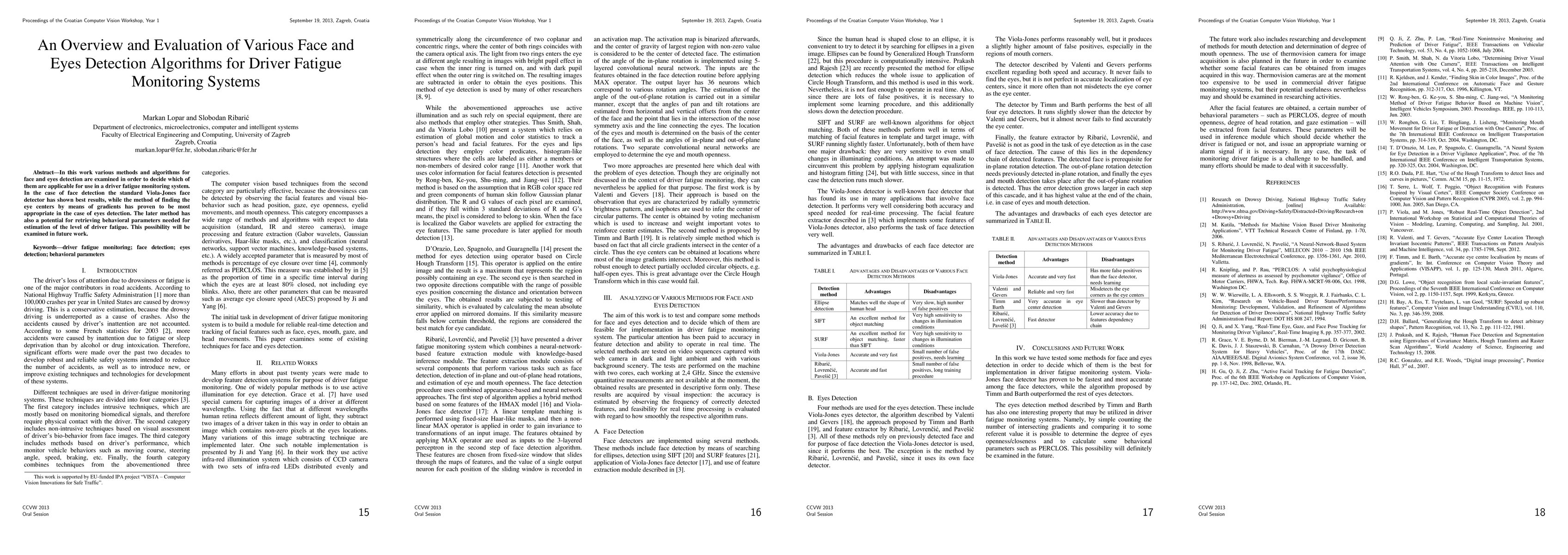 This paper evaluates various face and eyes detection algorithms for driver fatigue monitoring systems, finding that the Viola-Jones face detector is optimal for face detection, while gradient-based methods for eye center detection are most suitable for eyes detection and have potential for additional behavioral parameter retrieval.