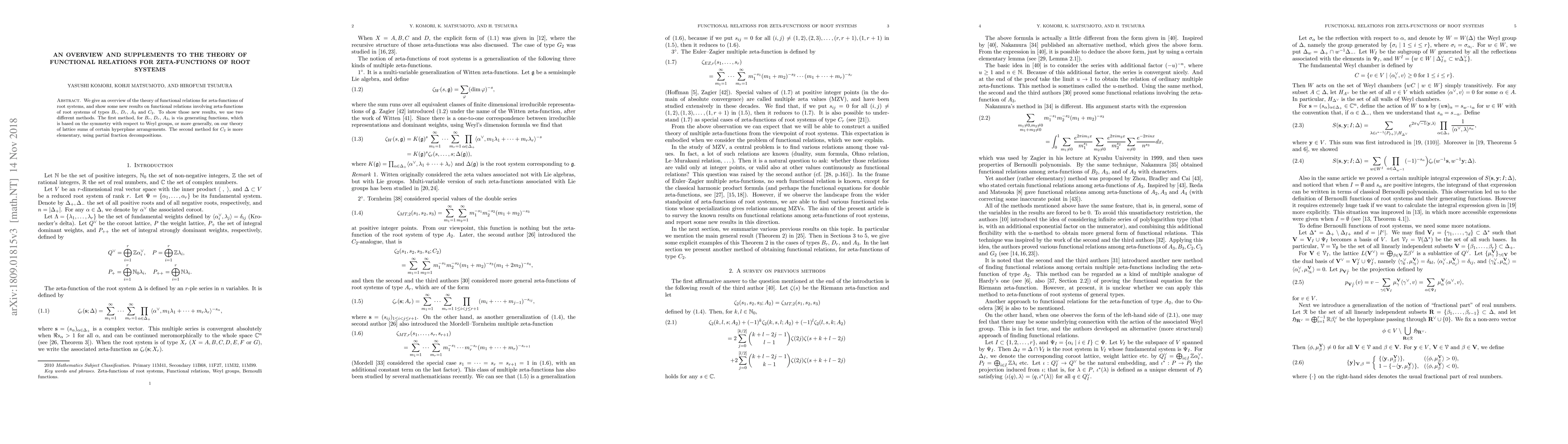 Researchers introduce new methods to study functional relations for zeta-functions of root systems, making connections between specific types (B_r, D_r, A_3, C_2) and exploring their implications in number theory.
