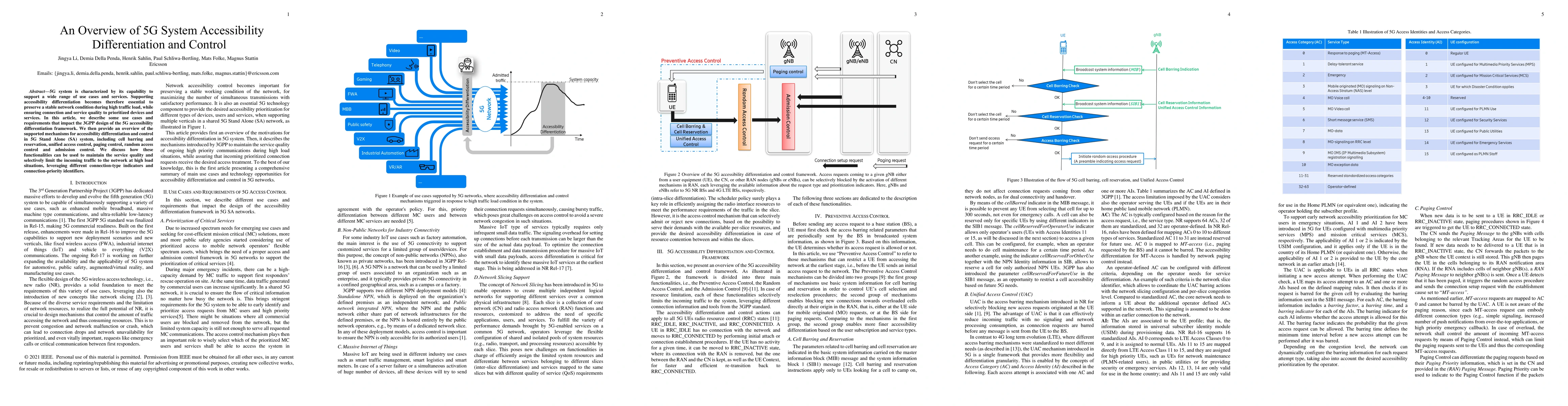 5G system is characterized by its capability to support a wide range of use cases and services. Supporting accessibility differentiation becomes therefore essential to preserve a stable network condition during high traffic load, while ensuring connection and service quality to prioritized devices and services. In this article, we describe some use cases and requirements that impact the 3GPP design of the 5G accessibility differentiation framework. We then provide an overview of the supported mechanisms for accessibility differentiation and control in 5G Stand Alone (SA) system, including cell barring and reservation, unified access control, paging control, random access control and admission control. We discuss how these functionalities can be used to maintain the service quality and selectively limit the incoming traffic to the network at high load situations, leveraging different connection-type indicators and connection-priority identifiers.