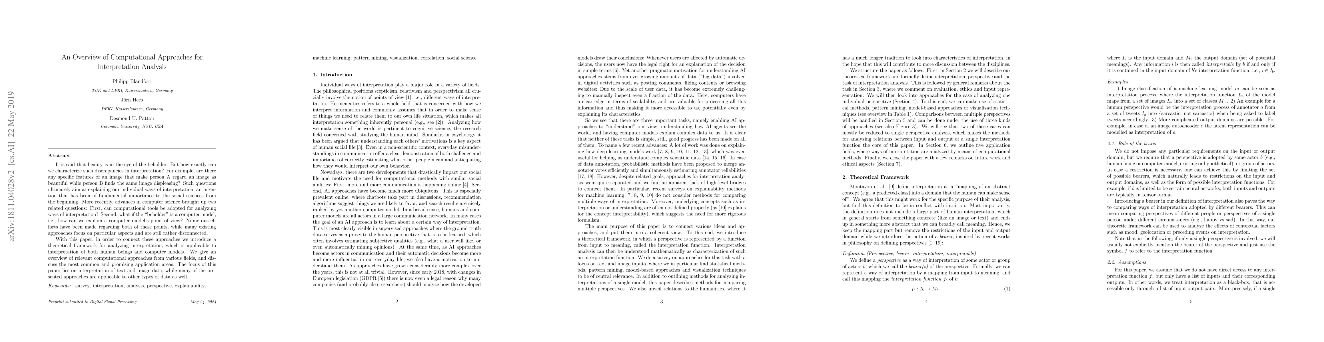 This paper introduces a theoretical framework for analyzing interpretation of both human beings and computer models, providing an overview of relevant computational approaches from various fields.
