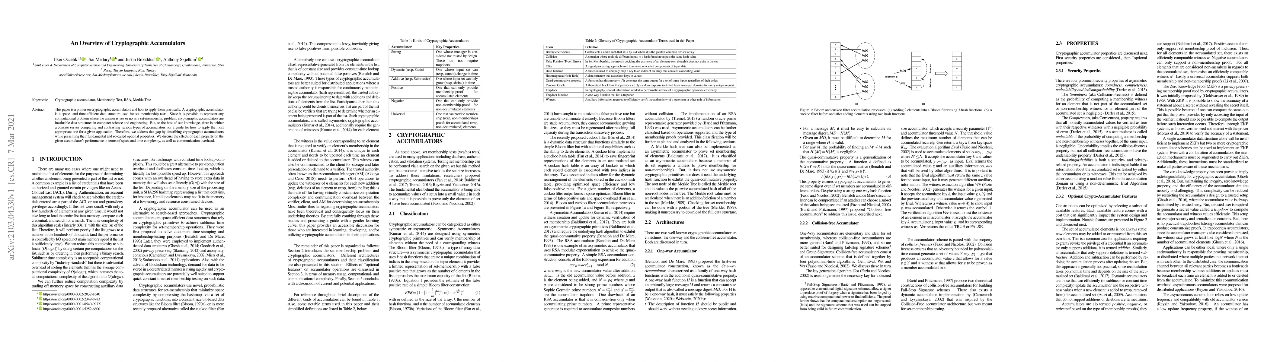 This paper is a primer on cryptographic accumulators and how to apply them practically. A cryptographic accumulator is a space- and time-efficient data structure used for set-membership tests. Since it is possible to represent any computational problem where the answer is yes or no as a set-membership problem, cryptographic accumulators are invaluable data structures in computer science and engineering. But, to the best of our knowledge, there is neither a concise survey comparing and contrasting various types of accumulators nor a guide for how to apply the most appropriate one for a given application. Therefore, we address that gap by describing cryptographic accumulators while presenting their fundamental and so-called optional properties. We discuss the effects of each property on the given accumulator's performance in terms of space and time complexity, as well as communication overhead.