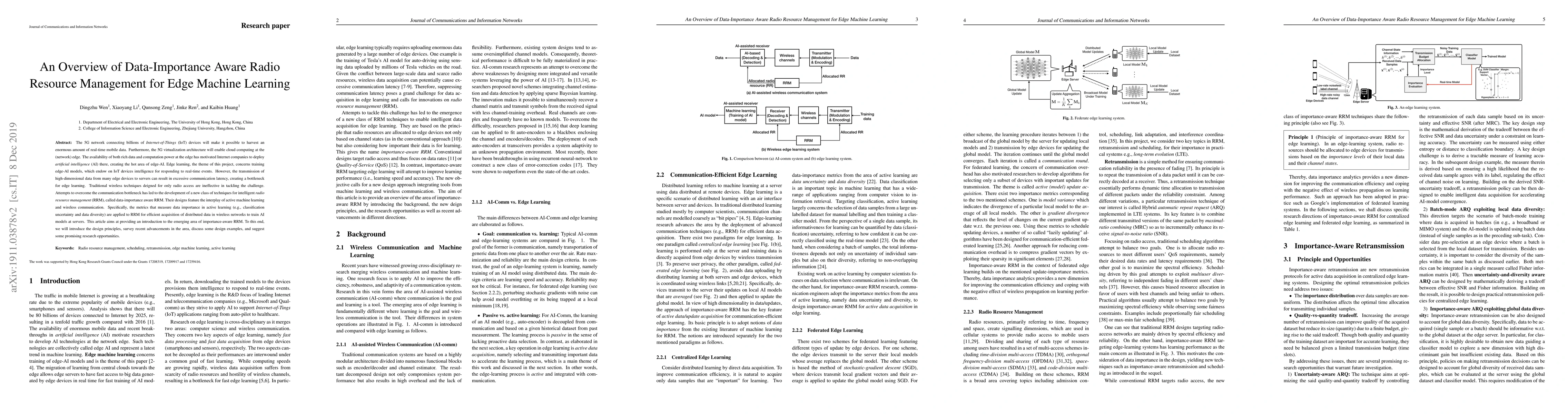 This paper introduces data-importance aware radio resource management (RRM) for edge machine learning, focusing on overcoming communication bottlenecks in training AI models for IoT devices. It surveys recent advancements, design principles, and examples, highlighting the integration of active machine learning metrics in RRM to optimize data acquisition in wireless networks.