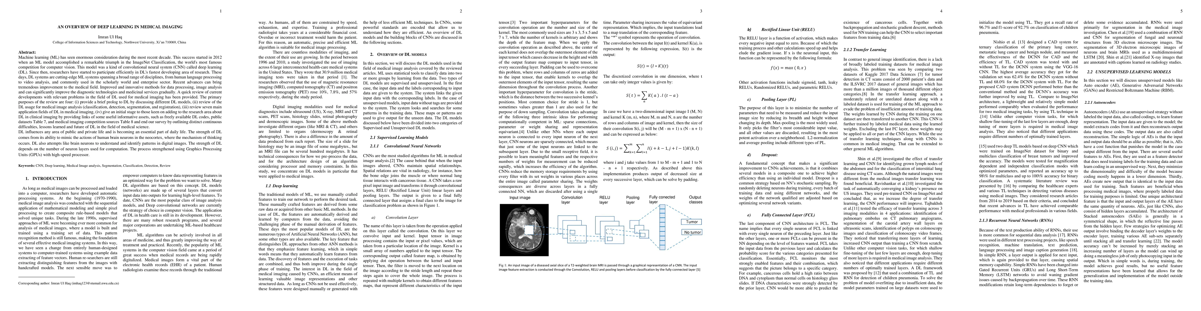 This paper provides an overview of deep learning (DL) in medical imaging, highlighting its transformative potential in diagnostics. It discusses various DL models, their application in medical image analysis, and seven key fields where DL is making significant advancements. The review aims to guide newcomers to the field by offering resources and addressing ongoing challenges and future directions.