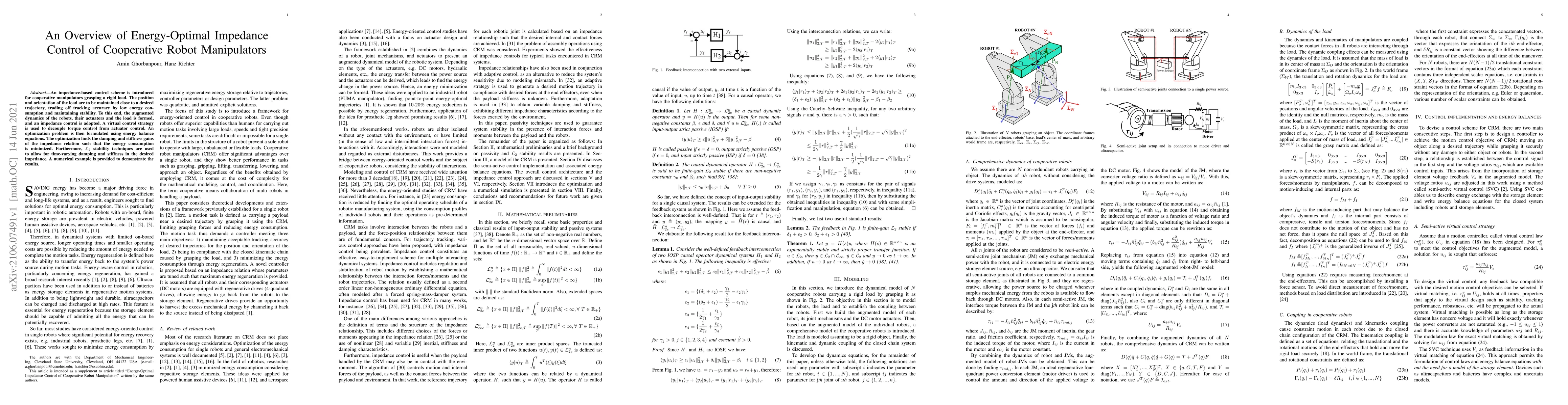 Researchers developed an impedance control scheme to minimize energy consumption while maintaining load position and orientation near a desired trajectory in cooperative robot manipulators.