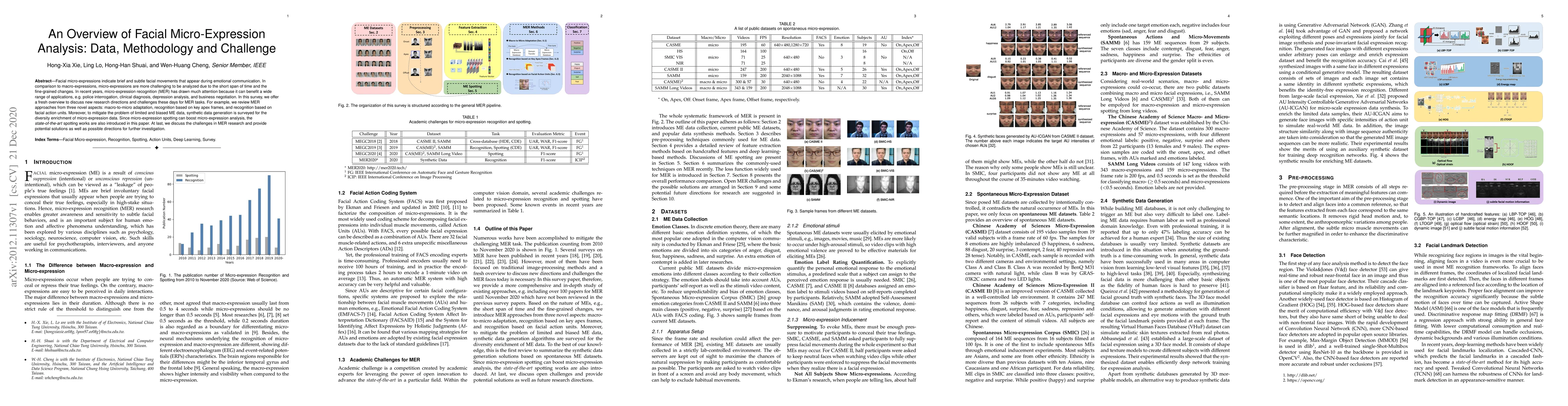 This paper provides a comprehensive overview of facial micro-expression analysis, reviewing recent methodologies including macro-to-micro adaptation, key apex frame recognition, and facial action unit-based recognition. It also discusses challenges in data scarcity and proposes synthetic data generation to enhance micro-expression datasets, alongside state-of-the-art spotting techniques.