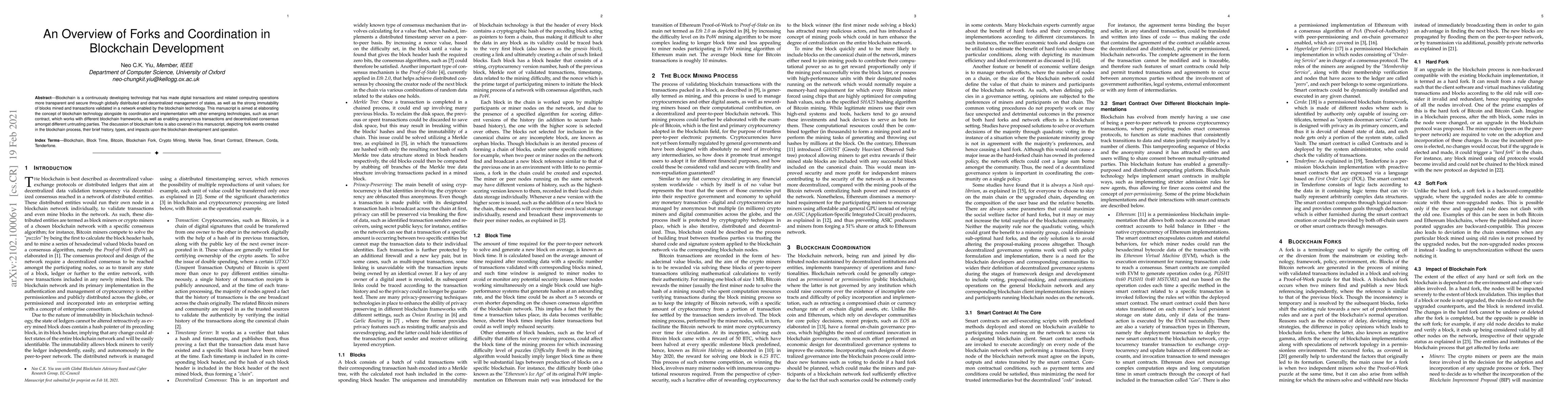 This paper provides an overview of blockchain technology, focusing on its decentralized management, immutability, and integration with smart contracts. It also discusses blockchain forks, including their history, types, and impacts on blockchain development and operations.