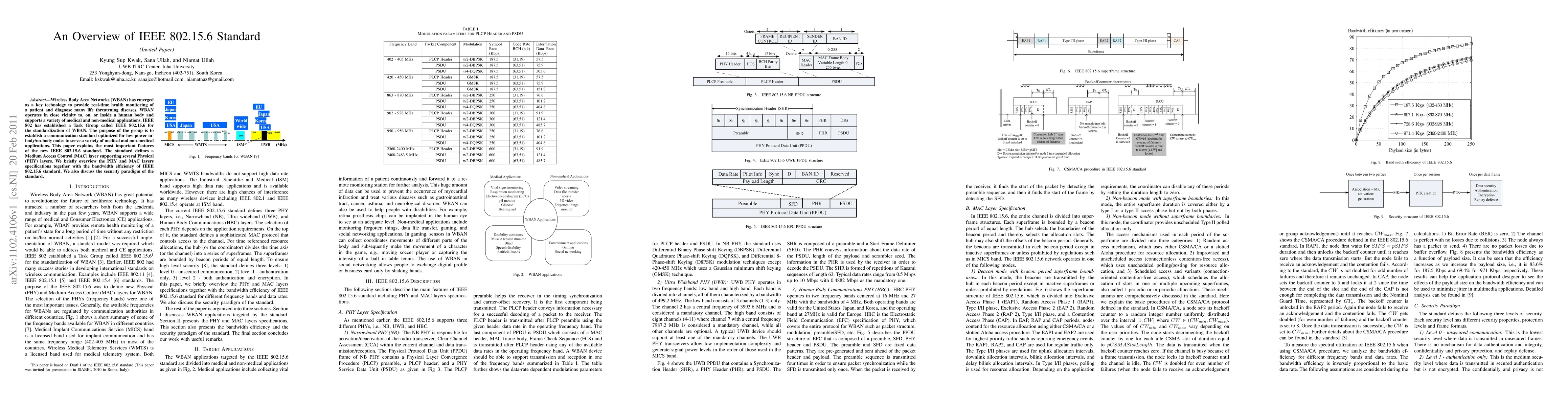 This paper provides an overview of the IEEE 802.15.6 standard for Wireless Body Area Networks (WBAN), focusing on its optimized low-power communication for medical and non-medical applications, and discusses its MAC and PHY layers, along with security considerations.