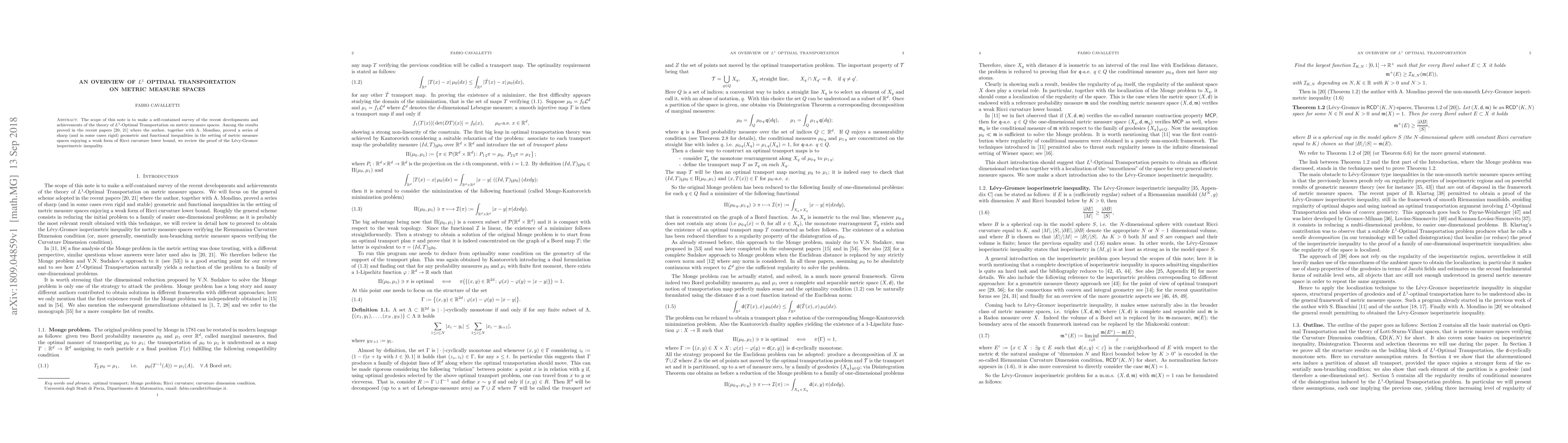 The scope of this note is to make a self-contained survey of the recent developments and achievements of the theory of L1-Optimal Transportation on metric measure spaces. Among the results proved in the recent papers [20, 21] where the author, together with A. Mondino, proved a series of sharp (and in some cases rigid) geometric and functional inequalities in the setting of metric measure spaces enjoying a weak form of Ricci curvature lower bound, we review the proof of the L\'evy-Gromov isoperimetric inequality.