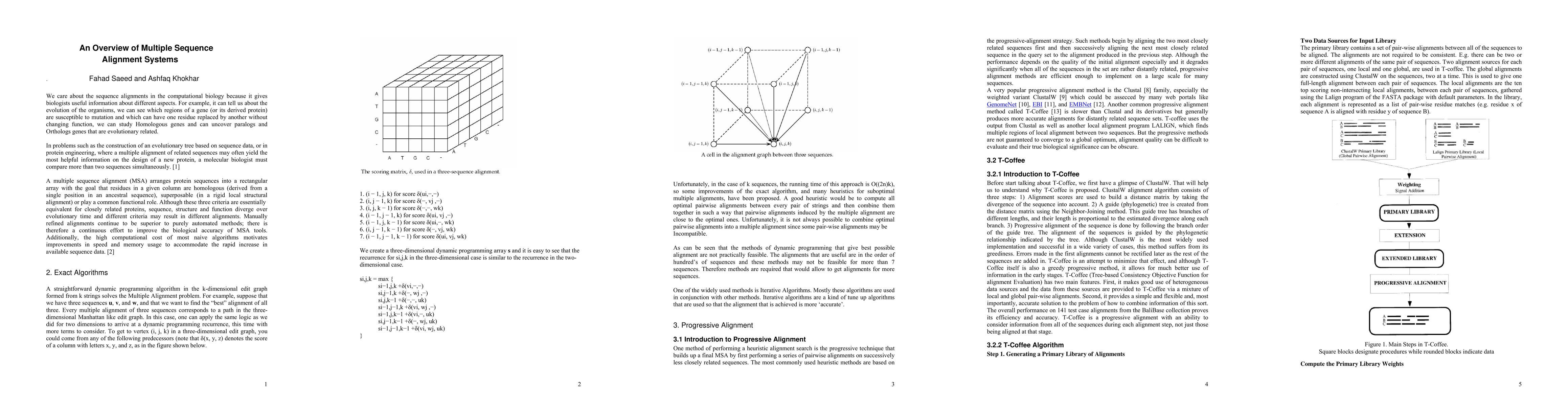 An overview of current multiple alignment systems to date are described.The useful algorithms, the procedures adopted and their limitations are presented.We also present the quality of the alignments obtained and in which cases(kind of alignments, kind of sequences etc) the particular systems are useful.