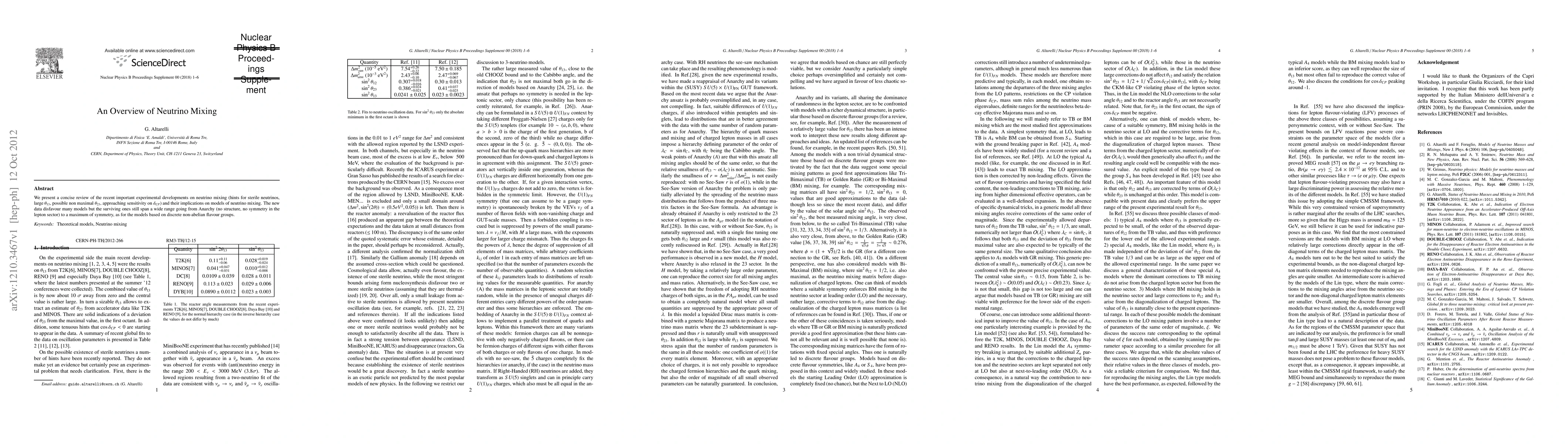 We present a concise review of the recent important experimental developments on neutrino mixing (hints for sterile neutrinos, large $\theta_{13}$, possible non maximal $\theta_{23}$, approaching sensitivity on $\delta_{CP}$) and their implications on models of neutrino mixing. The new data disfavour many models but the surviving ones still span a wide range going from Anarchy (no structure, no symmetry in the lepton sector) to a maximum of symmetry, as for the models based on discrete non-abelian flavour groups.