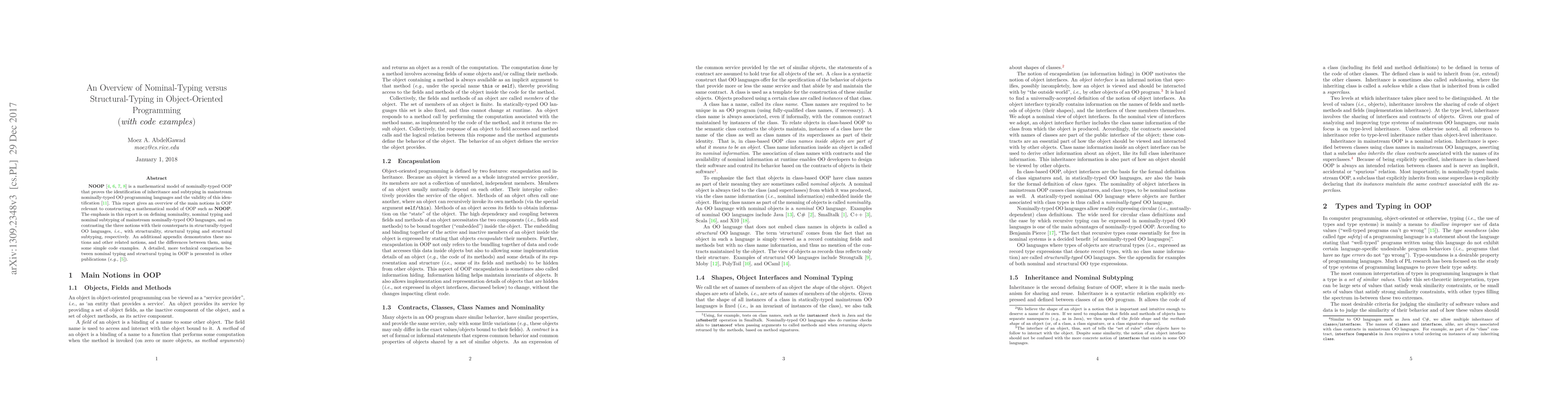 This paper provides an overview of nominal-typing versus structural-typing in object-oriented programming (OOP), focusing on defining nominality and contrasting it with structurality. It highlights the differences between nominal and structural typing and subtyping, supported by simple code examples in an appendix.