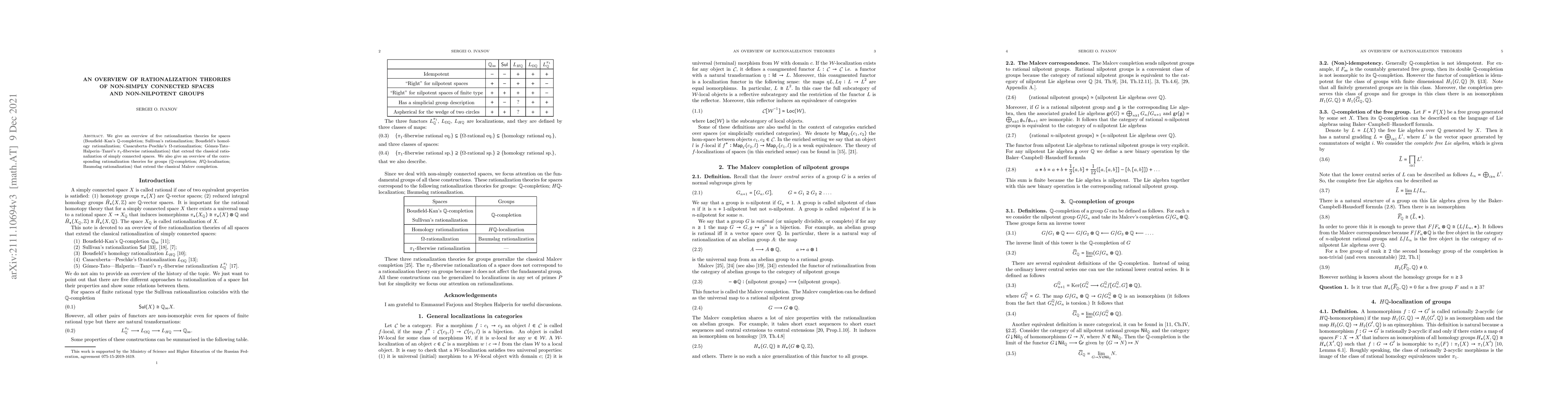 This paper reviews five advanced rationalization theories for non-simply connected spaces and corresponding theories for non-nilpotent groups, extending the classical rationalization techniques used for simply connected spaces and Malcev completion for groups.