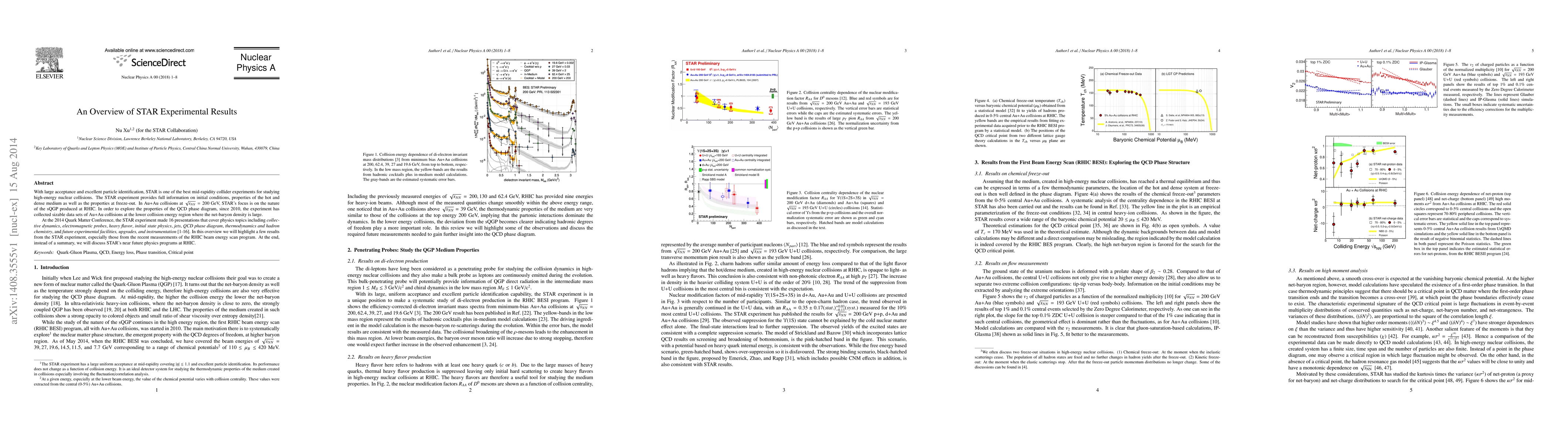 With large acceptance and excellent particle identification, STAR is one of the best mid-rapidity collider experiments for studying high-energy nuclear collisions. The STAR experiment provides full information on initial conditions, properties of the hot and dense medium as well as the properties at freeze-out. In Au+Au collisions at $\sqrt{s_{NN}} = 200$ GeV, STAR's focus is on the nature of the sQGP produced at RHIC. In order to explore the properties of the QCD phase diagram, since 2010, the experiment has collected sizable data sets of Au+Au collisions at the lower collision energy region where the net-baryon density is large. At the 2014 Quark Matter Conference, the STAR experiment made 16 presentations that cover physics topics including {\it collective dynamics}, {\it electromagnetic probes}, {\it heavy flavor}, {\it initial state physics}, {\it jets}, {\it QCD phase diagram}, {\it thermodynamics and hadron chemistry}, and {\it future experimental facilities, upgrades, and instrumentation} [1-16]. In this overview we will highlight a few results from the STAR experiment, especially those from the recent measurements of the RHIC beam energy scan program. At the end, instead of a summary, we will discuss STAR's near future physics programs at RHIC.