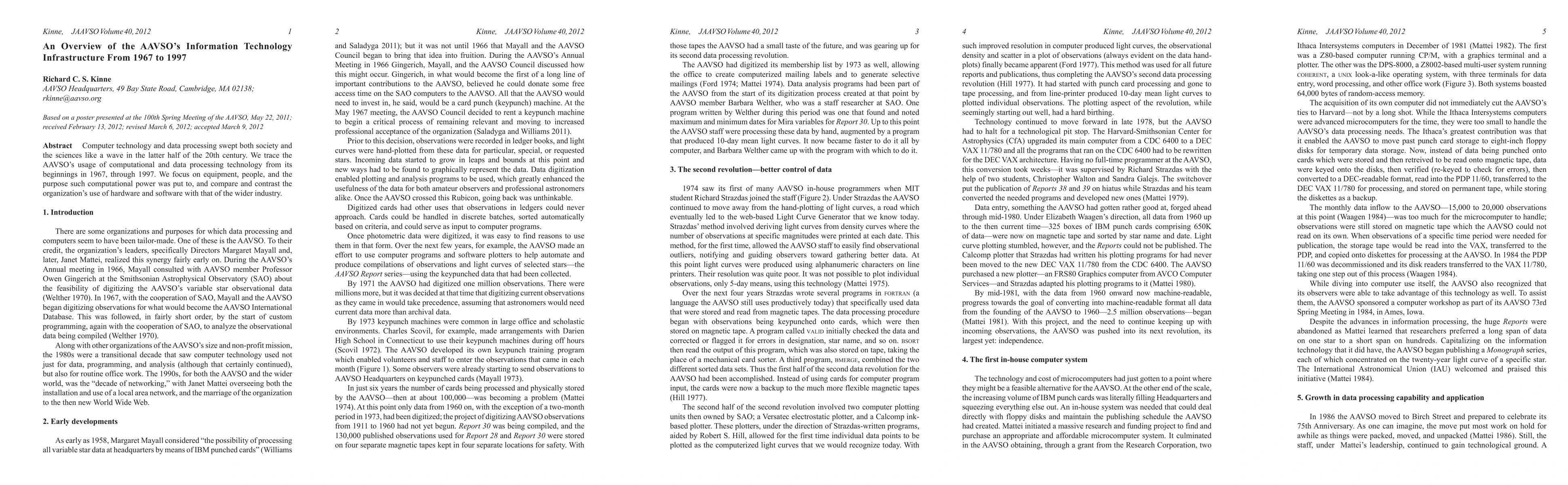 Computer technology and data processing swept both society and the sciences like a wave in the latter half of the 20th century. We trace the AAVSO's usage of computational and data processing technology from its beginnings in 1967, through 1997. We focus on equipment, people, and the purpose such computational power was put to, and compare and contrast the organization's use of hardware and software with that of the wider industry.