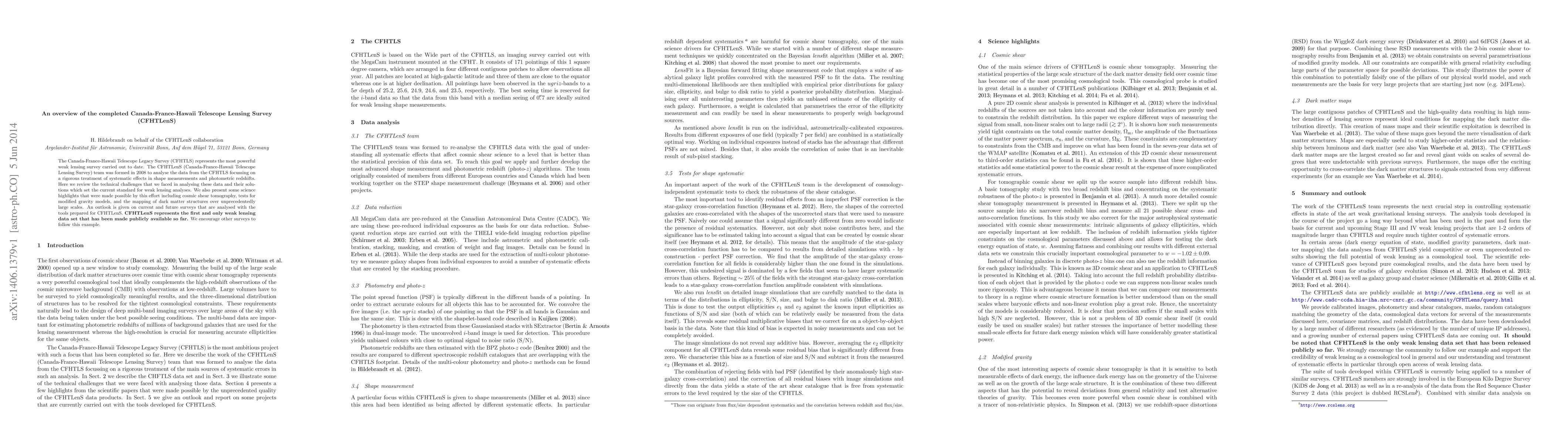 The CFHTLenS survey, part of the Canada-France-Hawaii Telescope Legacy Survey, rigorously analyzed weak lensing data to address systematic effects, setting new standards for such analyses. It enabled significant scientific discoveries, including cosmic shear tomography and dark matter mapping, and is the first publicly available weak lensing dataset.