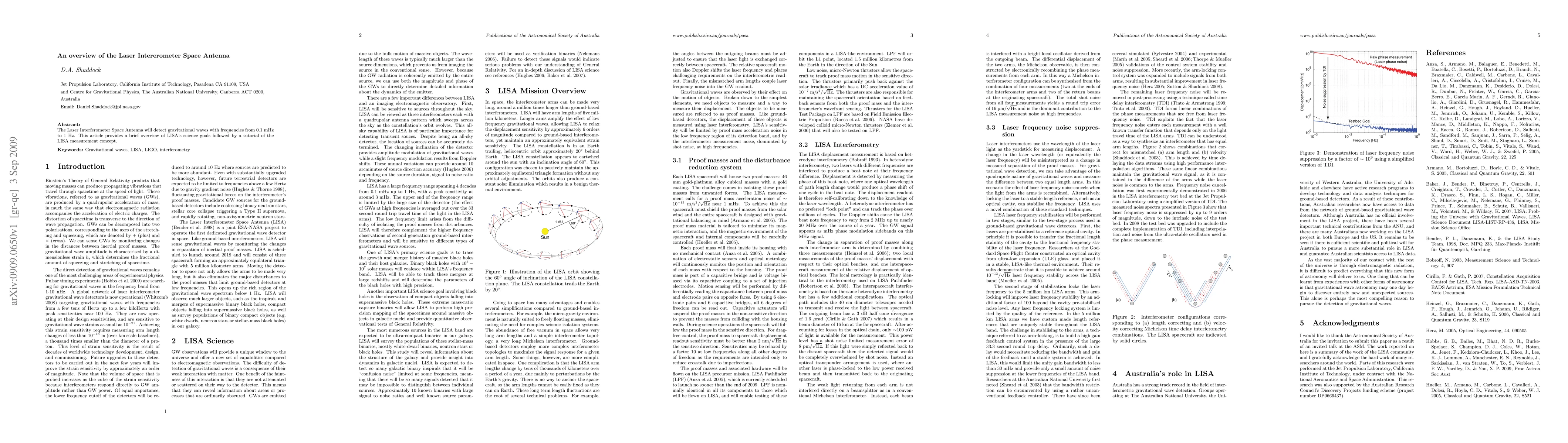 The Laser Interferometer Space Antenna (LISA) aims to detect gravitational waves in the frequency range of 0.1 mHz to 1 Hz. This paper outlines LISA's scientific objectives and explains its measurement concept based on laser interferometry.