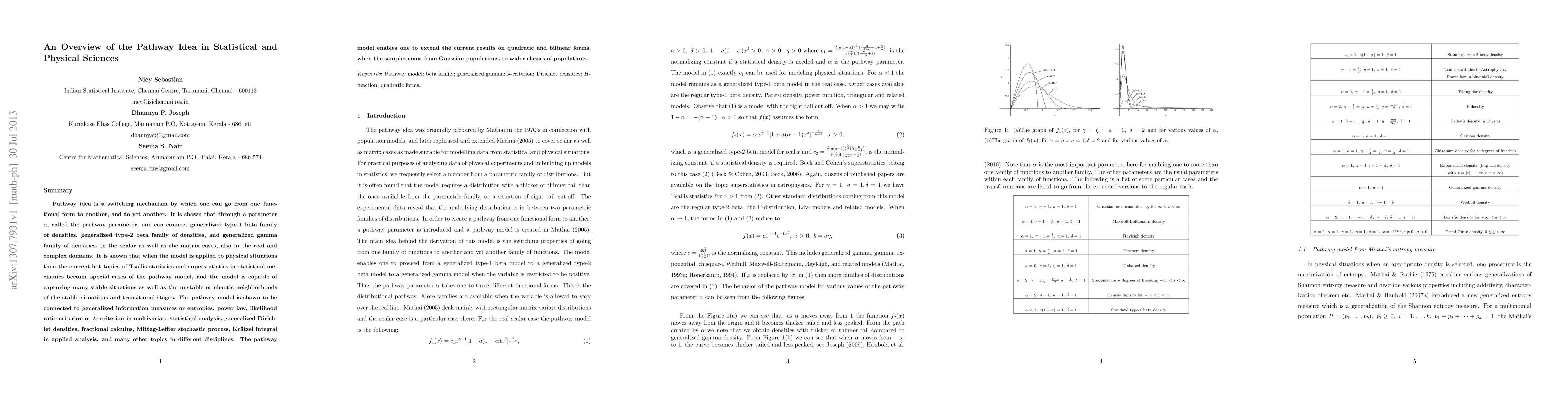 This paper introduces the pathway idea as a versatile switching mechanism connecting various statistical and physical models through a parameter $\alpha$. It demonstrates the pathway model's applicability to Tsallis statistics, superstatistics, and numerous other topics, highlighting its potential to extend results on quadratic and bilinear forms beyond Gaussian populations.