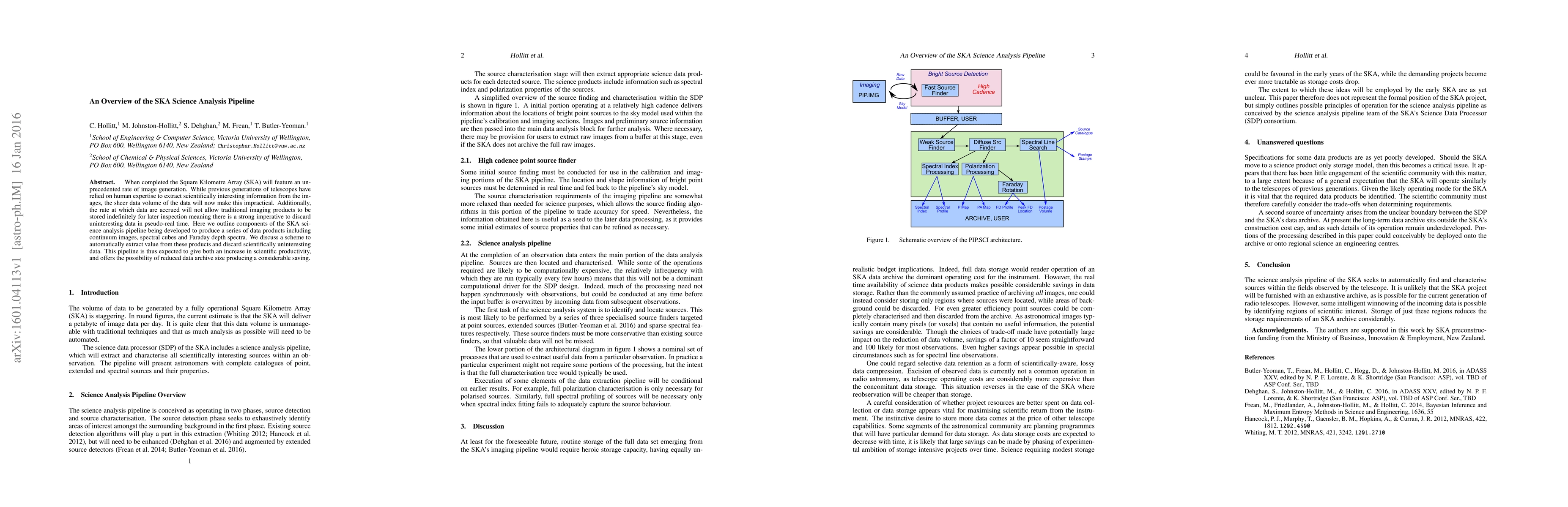 The SKA science analysis pipeline aims to automate the extraction of scientifically interesting data from the vast amount of images generated by the Square Kilometre Array, reducing data archive size and increasing scientific productivity.