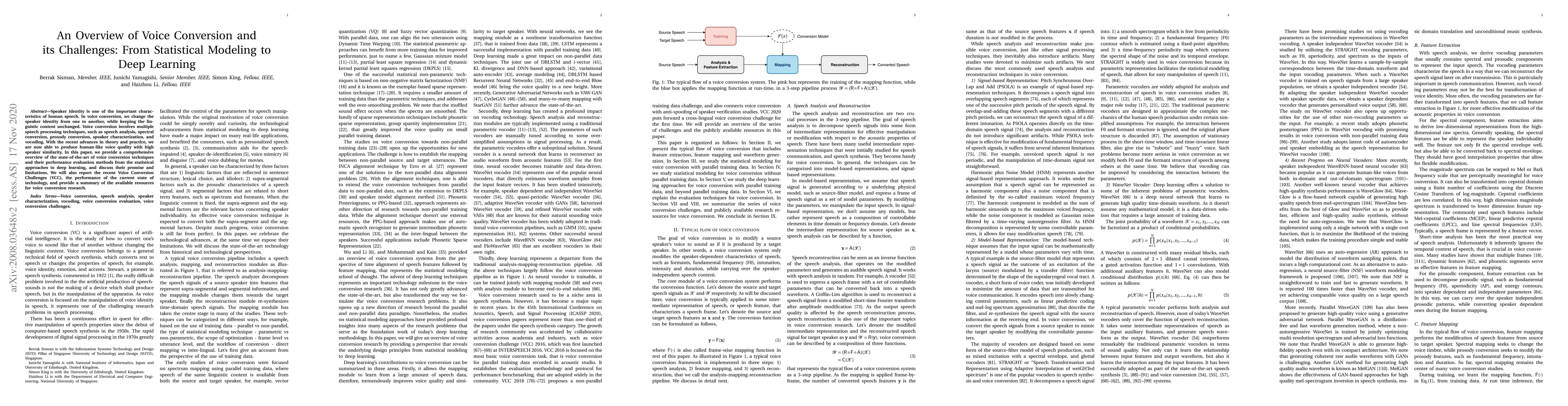 Speaker identity is one of the important characteristics of human speech. In voice conversion, we change the speaker identity from one to another, while keeping the linguistic content unchanged. Voice conversion involves multiple speech processing techniques, such as speech analysis, spectral conversion, prosody conversion, speaker characterization, and vocoding. With the recent advances in theory and practice, we are now able to produce human-like voice quality with high speaker similarity. In this paper, we provide a comprehensive overview of the state-of-the-art of voice conversion techniques and their performance evaluation methods from the statistical approaches to deep learning, and discuss their promise and limitations. We will also report the recent Voice Conversion Challenges (VCC), the performance of the current state of technology, and provide a summary of the available resources for voice conversion research.