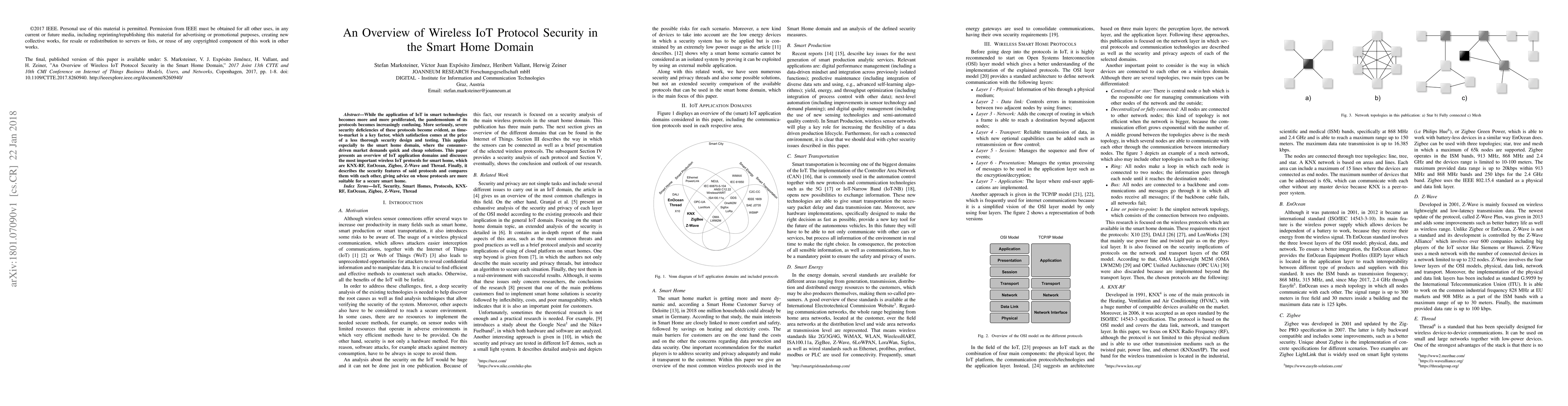 A comprehensive review of existing wireless IoT protocols for smart home applications was conducted.