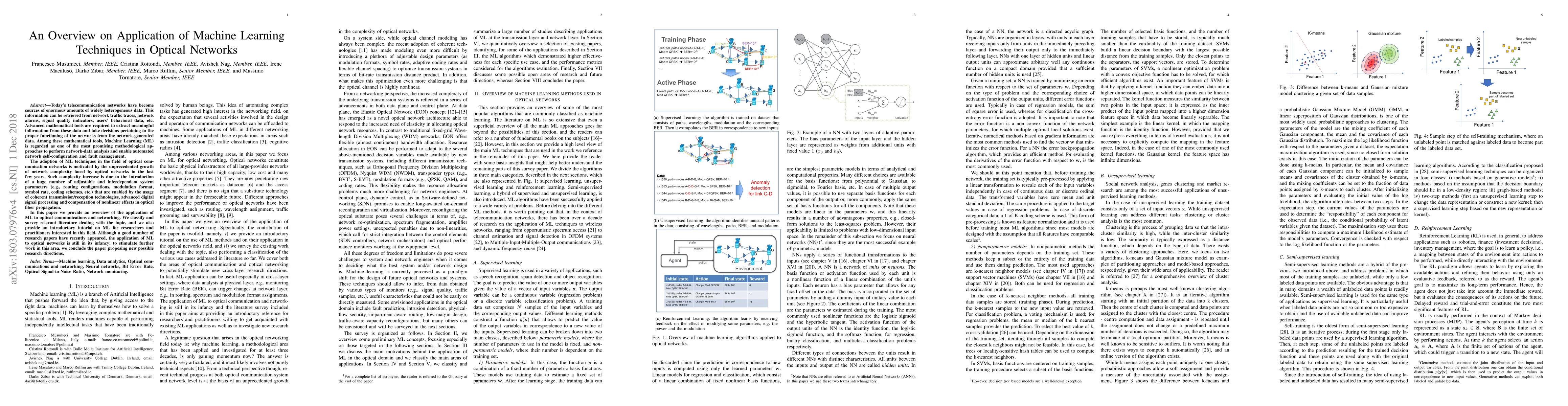 This paper provides an overview of the application of Machine Learning techniques in optical communication networks, highlighting the growing complexity of these networks and the potential of ML for automated network self-configuration and fault management. It surveys relevant literature and proposes new research directions to stimulate further work in this emerging field.