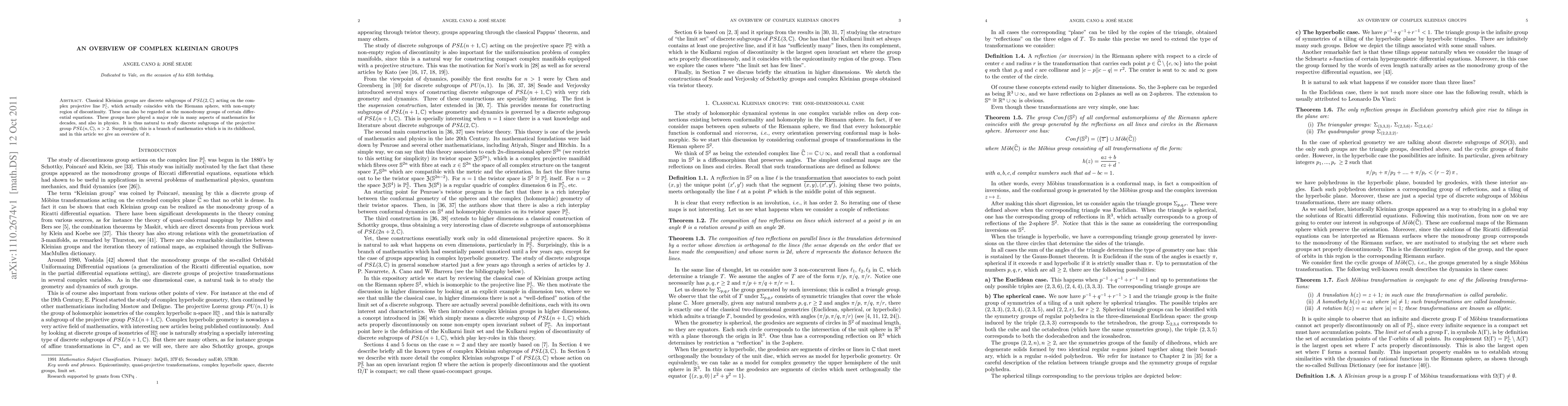 This paper provides an overview of complex Kleinian groups, focusing on discrete subgroups of $PSL(n,\C)$ for $n > 2$ that act on higher-dimensional analogues of the Riemann sphere. It highlights the historical significance and emerging research in this relatively new branch of mathematics.