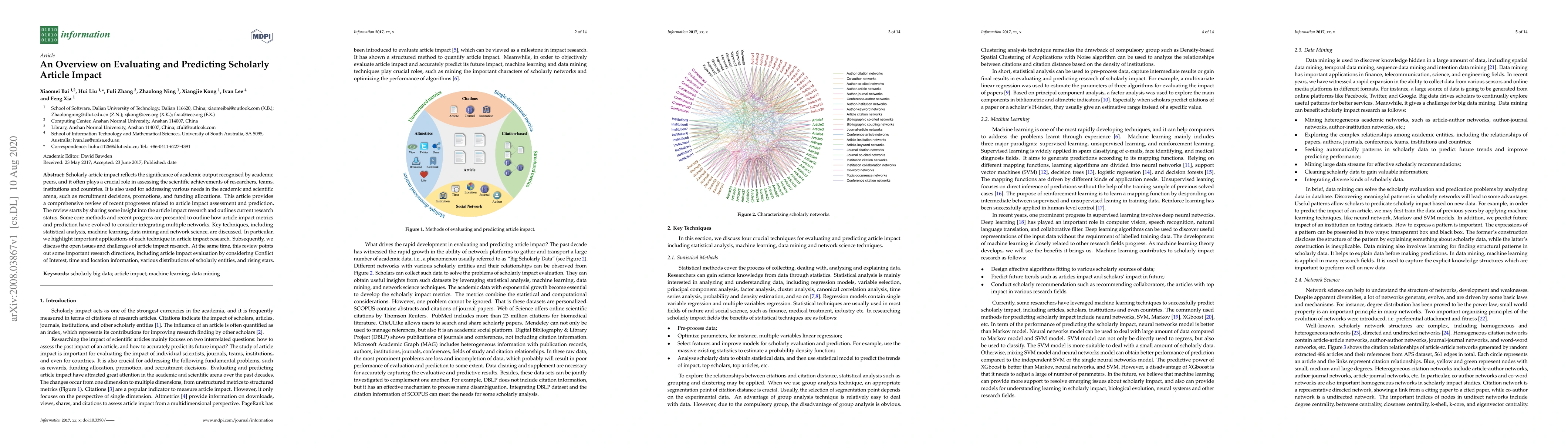 This paper reviews recent advancements in evaluating and predicting the impact of scholarly articles, emphasizing the integration of multiple networks, statistical analysis, machine learning, and data mining. It also discusses open challenges and future research directions, including the consideration of conflict of interest, temporal and locational factors, and emerging trends.