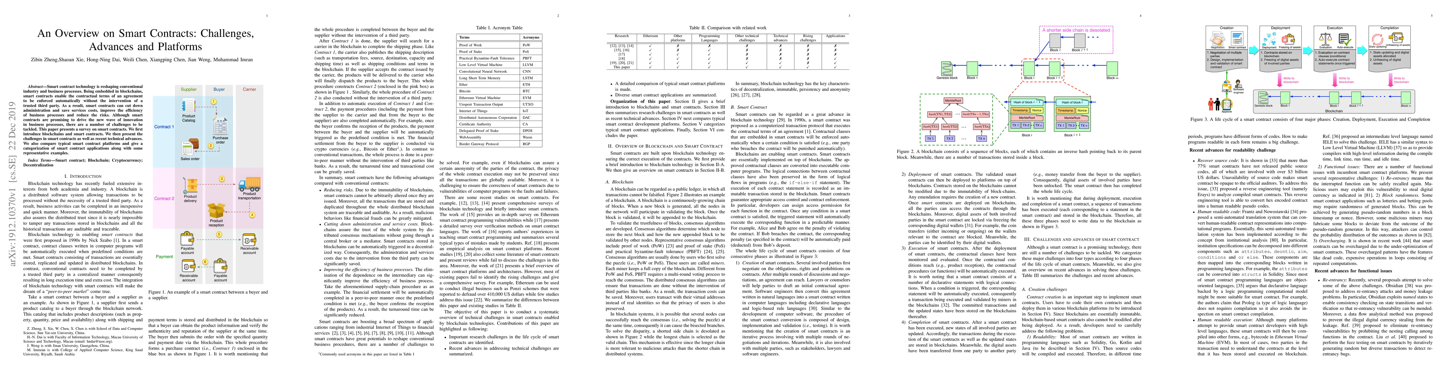 This paper surveys smart contract technology, highlighting its potential to revolutionize business processes through blockchain-based automation. It discusses challenges, recent advances, and compares various smart contract platforms, categorizing applications with examples.