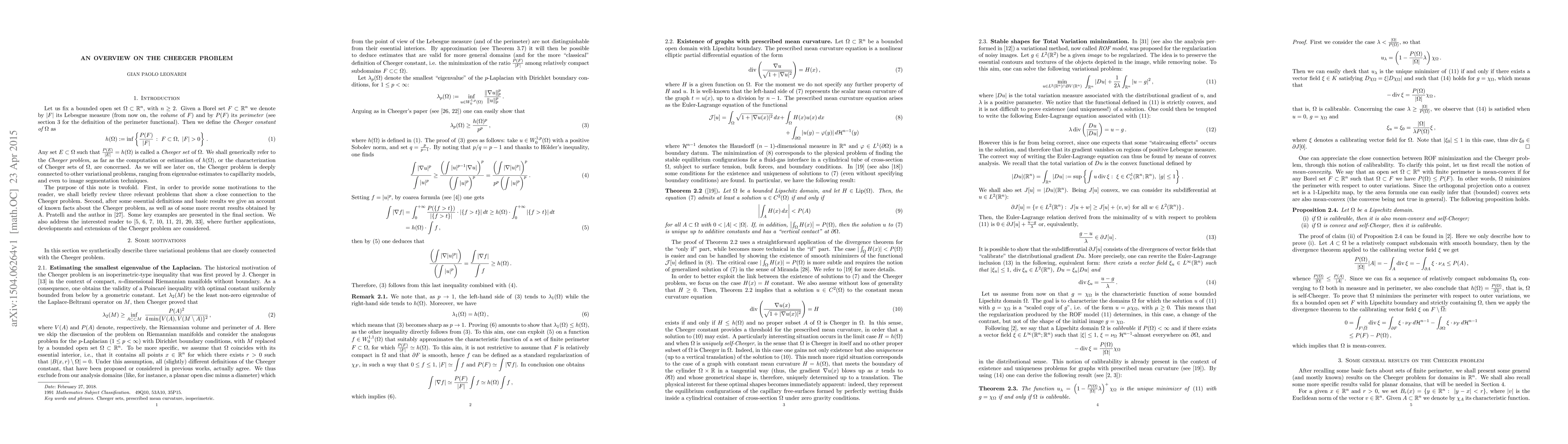 This paper provides an overview of the Cheeger problem, highlighting its connections to various mathematical problems including eigenvalue estimates and image segmentation. It summarizes classical and recent results in collaboration with Aldo Pratelli, offering insights into the problem's significance.