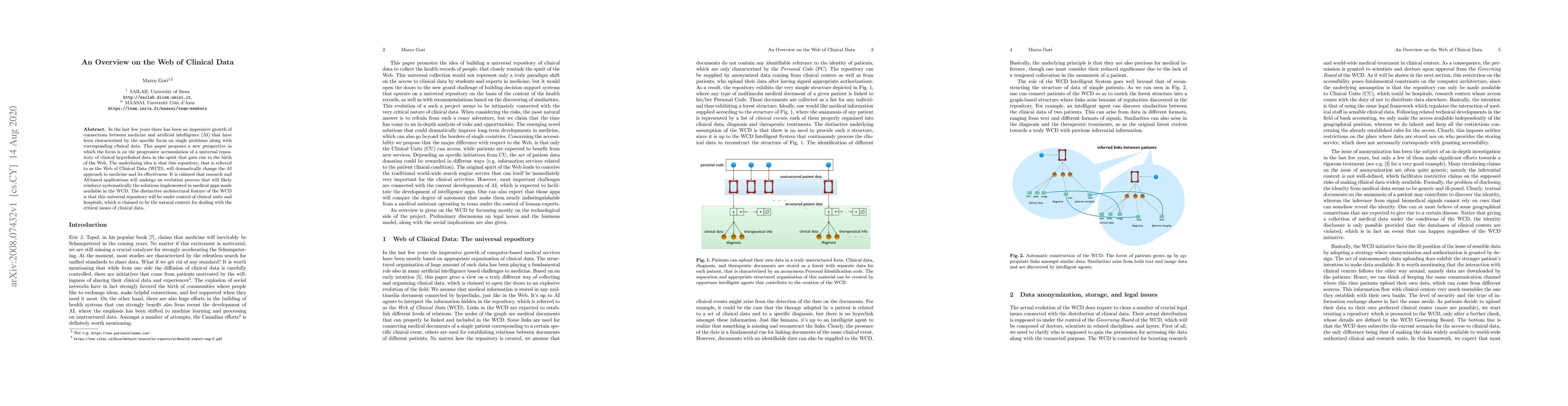In the last few years there has been an impressive growth of connections between medicine and artificial intelligence (AI) that have been characterized by the specific focus on single problems along with corresponding clinical data. This paper proposes a new perspective in which the focus is on the progressive accumulation of a universal repository of clinical hyperlinked data in the spirit that gave rise to the birth of the Web. The underlining idea is that this repository, that is referred to as the Web of Clinical Data (WCD), will dramatically change the AI approach to medicine and its effectiveness. It is claimed that research and AI-based applications will undergo an evolution process that will likely reinforce systematically the solutions implemented in medical apps made available in the WCD. The distinctive architectural feature of the WCD is that this universal repository will be under control of clinical units and hospitals, which is claimed to be the natural context for dealing with the critical issues of clinical data.