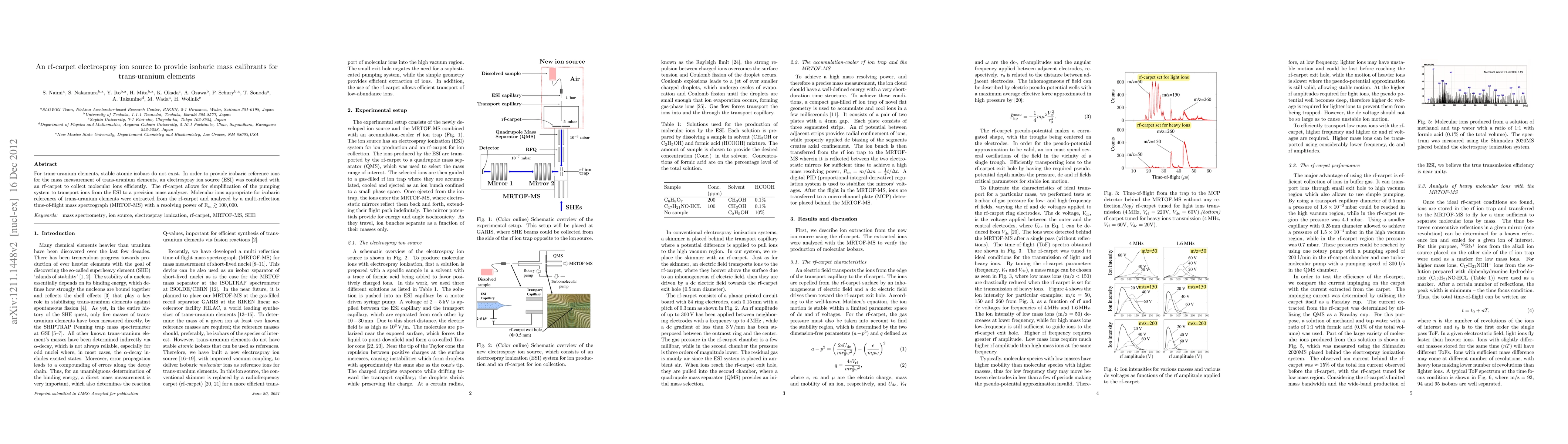 This paper describes an innovative electrospray ion source combined with an rf-carpet to generate isobaric reference ions for trans-uranium elements, which lack stable isobars. The setup facilitates efficient ion collection and analysis using a high-resolution multi-reflection time-of-flight mass spectrograph.