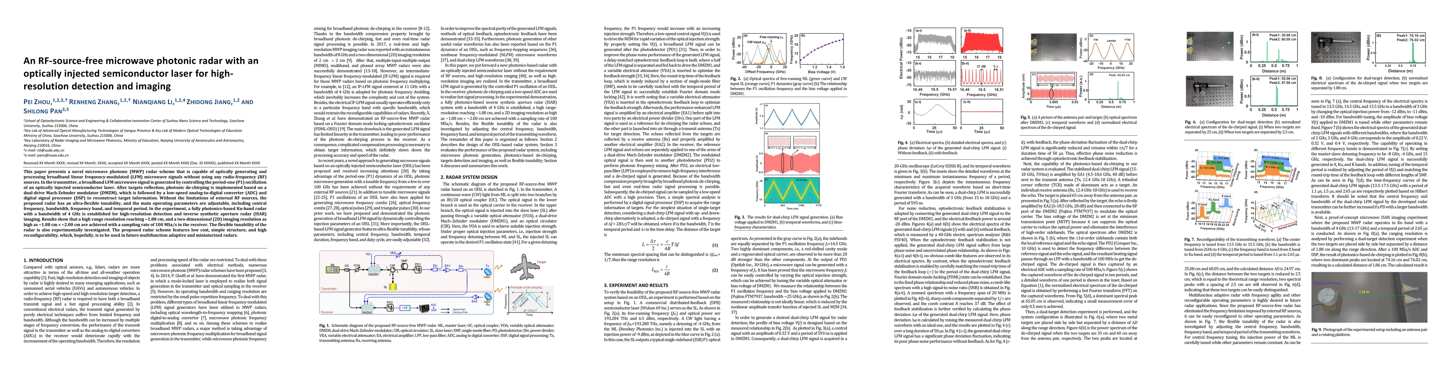 This paper introduces a novel microwave photonic radar system that generates and processes broadband microwave signals without RF sources, using an optically injected semiconductor laser. The radar achieves high-resolution detection and imaging with a flexible tunability and reconfigurability, demonstrated through a Ku-band radar with a 4 GHz bandwidth and a resolution of 1.88 cm.