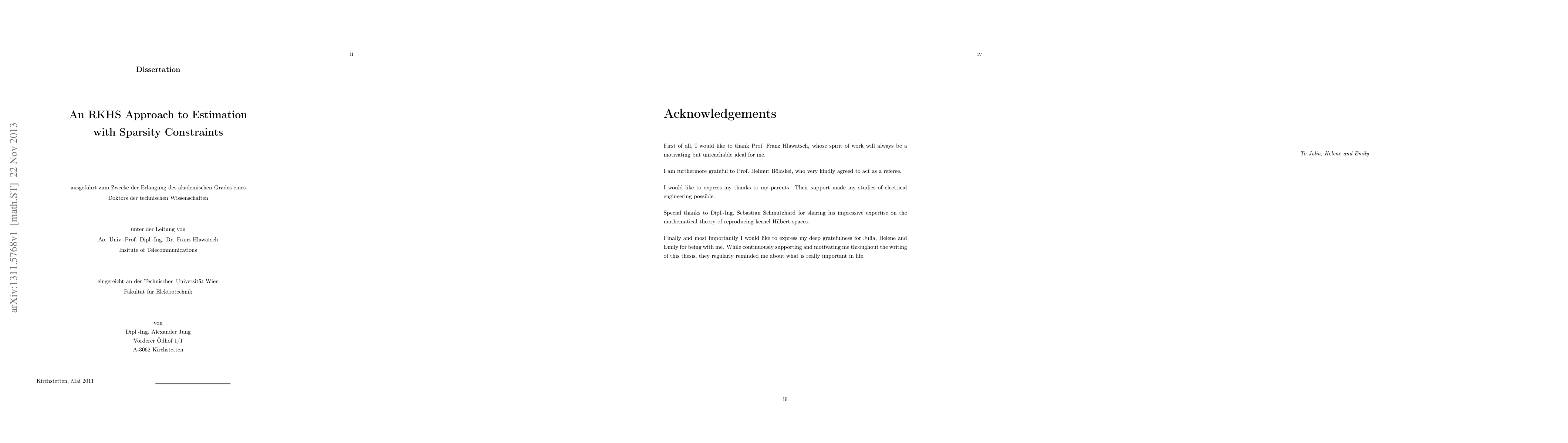 The investigation of the effects of sparsity or sparsity constraints in signal processing problems has received considerable attention recently. Sparsity constraints refer to the a priori information that the object or signal of interest can be represented by using only few elements of a predefined dictionary. Within this thesis, sparsity refers to the fact that a vector to be estimated has only few nonzero entries. One specific field concerned with sparsity constraints has become popular under the name Compressed Sensing (CS). Within CS, the sparsity is exploited in order to perform (nearly) lossless compression. Moreover, this compression is carried out jointly or simultaneously with the process of sensing a physical quantity. In contrast to CS, one can alternatively use sparsity to enhance signal processing methods. Obviously, sparsity constraints can only improve the obtainable estimation performance since the constraints can be interpreted as an additional prior information about the unknown parameter vector which is to be estimated. Our main focus will be on this aspect of sparsity, i.e., we analyze how much we can gain in estimation performance due to the sparsity constraints.