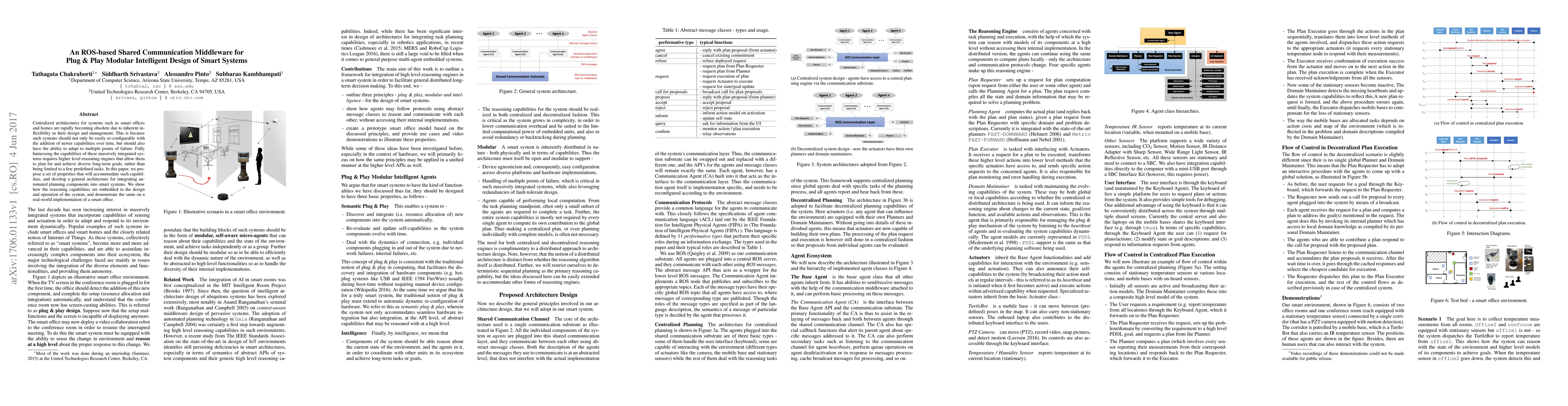 Centralized architectures for systems such as smart offices and homes are rapidly becoming obsolete due to inherent inflexibility in their design and management. This is because such systems should not only be easily re-configurable with the addition of newer capabilities over time but should also have the ability to adapt to multiple points of failure. Fully harnessing the capabilities of these massively integrated systems requires higher level reasoning engines that allow them to plan for and achieve diverse long-term goals, rather than being limited to a few predefined tasks. In this paper, we propose a set of properties that will accommodate such capabilities, and develop a general architecture for integrating automated planning components into smart systems. We show how the reasoning capabilities are embedded in the design and operation of the system and demonstrate the same on a real-world implementation of a smart office.