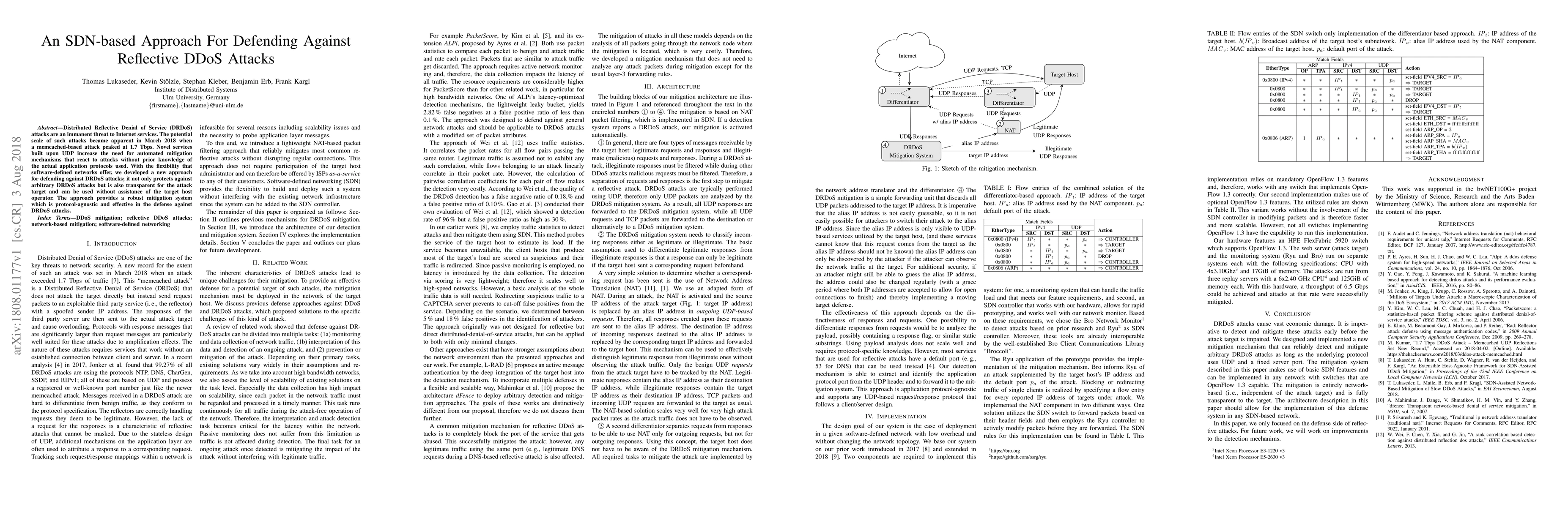 This paper proposes an SDN-based method to defend against Distributed Reflective Denial of Service (DRDoS) attacks, which are increasingly threatening Internet services. The approach is protocol-agnostic, transparent to the attack target, and effective without requiring assistance from the target host operator.