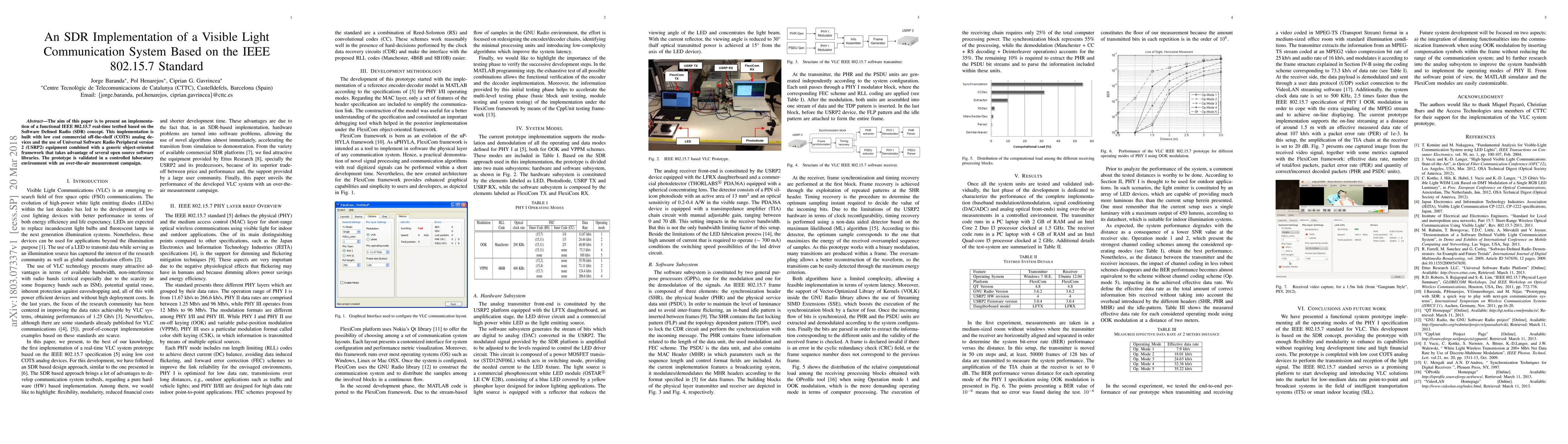 Researchers implemented a low-cost, real-time Visible Light Communication (VLC) system using Software Defined Radio (SDR) technology. The prototype was tested in a laboratory environment and validated through over-the-air measurements.