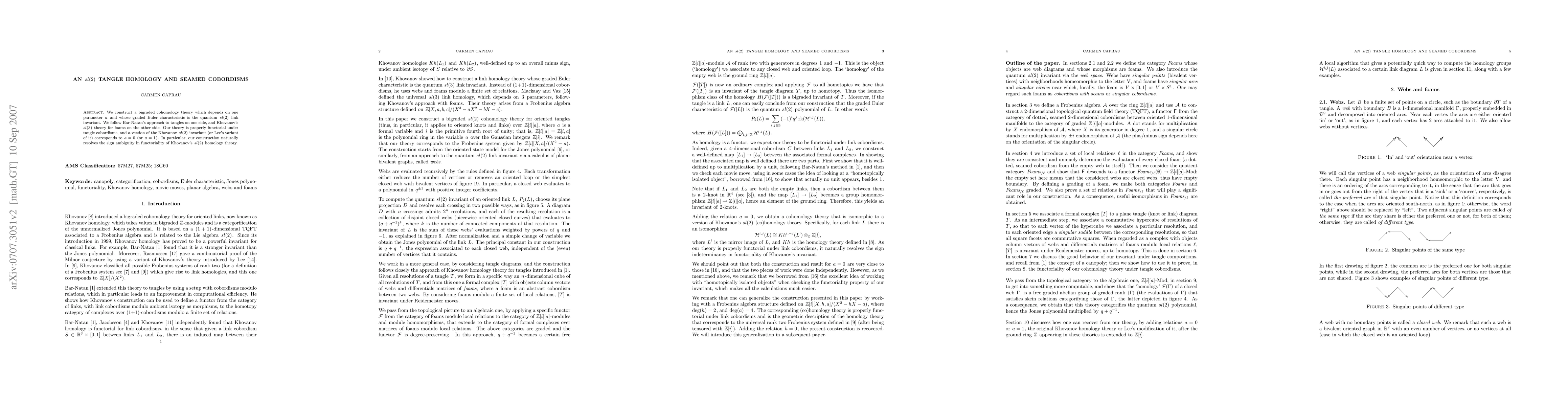 We construct a bigraded (co)homology theory which depends on a parameter a, and whose graded Euler characteristic is the quantum sl(2) link invariant. We follow Bar-Natan's approach to tangles on one side, and Khovanov's sl(3) theory for foams on the other side. Our theory is properly functorial under tangle cobordisms, and a version of the Khovanov sl(2) invariant (or Lee's modification of it) corresponds to a=0 (or a=1). In particular, our construction naturally resolves the sign ambiguity in the functoriality of Khovanov's sl(2) homology theory.
