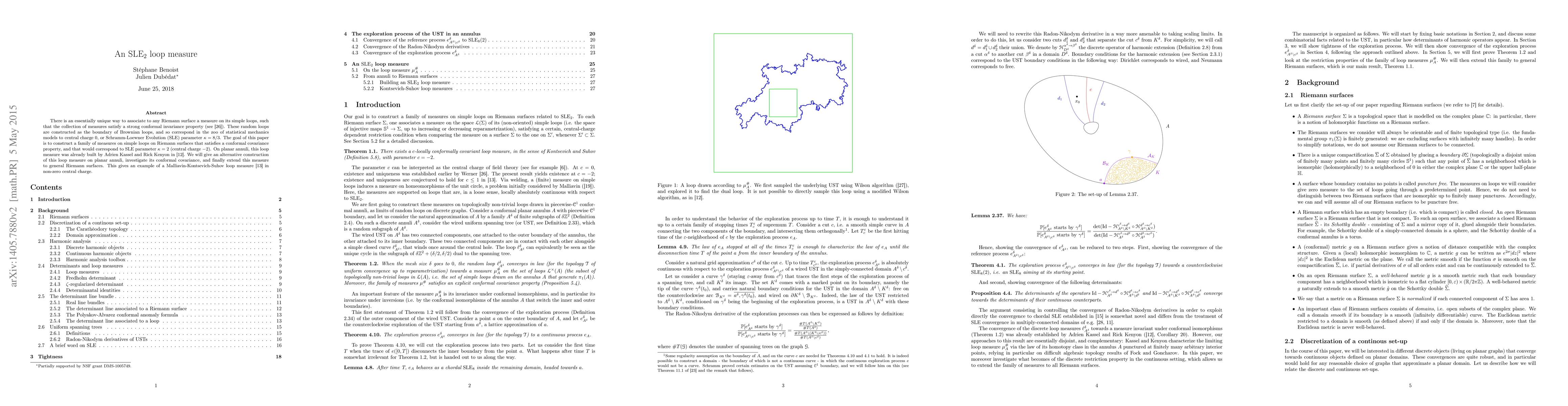 This paper constructs a new measure on simple loops on Riemann surfaces corresponding to the SLE$_2$ parameter, providing an alternative construction on planar annuli and extending it to general Riemann surfaces, thereby exemplifying a Malliavin-Kontsevich-Suhov loop measure at non-zero central charge.