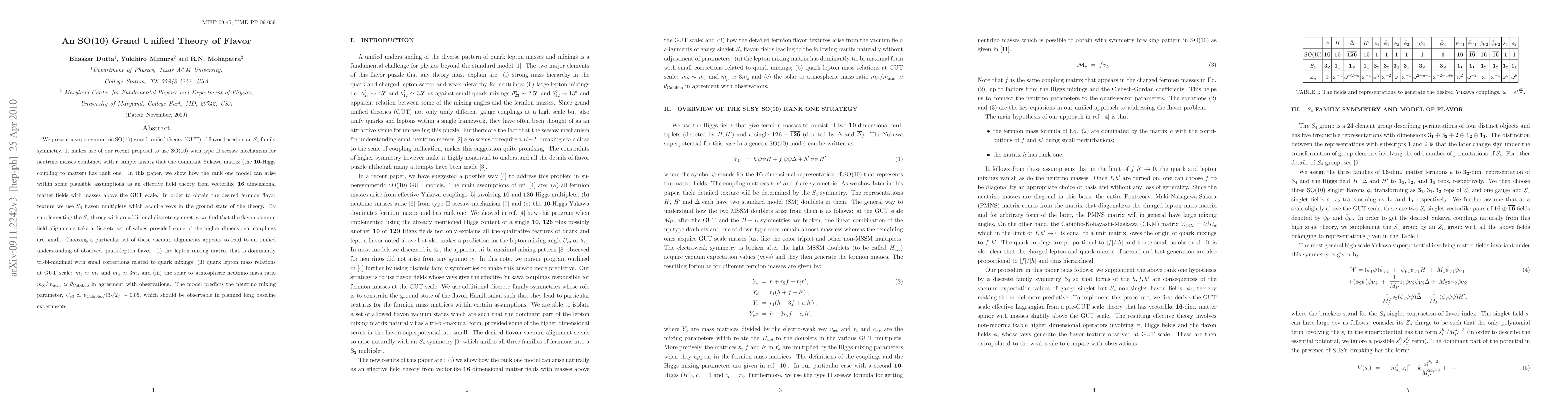 This paper proposes a supersymmetric SO(10) grand unified theory of flavor based on an $S_4$ family symmetry, utilizing type II seesaw for neutrino masses and a rank one Yukawa matrix. It demonstrates how this model, supplemented by an additional discrete symmetry, can yield a unified understanding of quark-lepton flavor relations and predict observable neutrino mixing parameters.