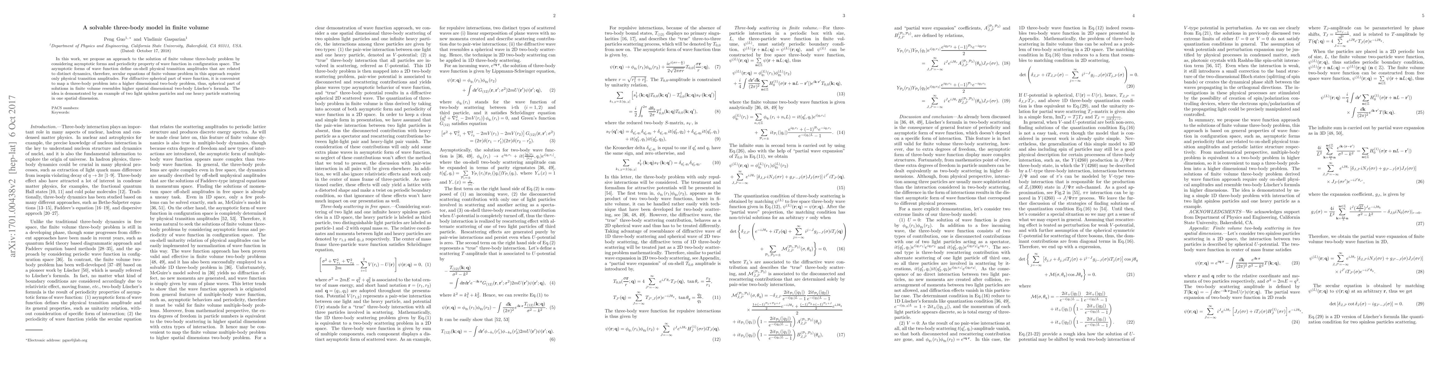 This paper proposes a novel approach to solving the finite volume three-body problem by mapping it into a higher dimensional two-body problem, demonstrated through a 1D scattering example of two light and one heavy spinless particles. The method derives quantization conditions for the 1D three-body problem.