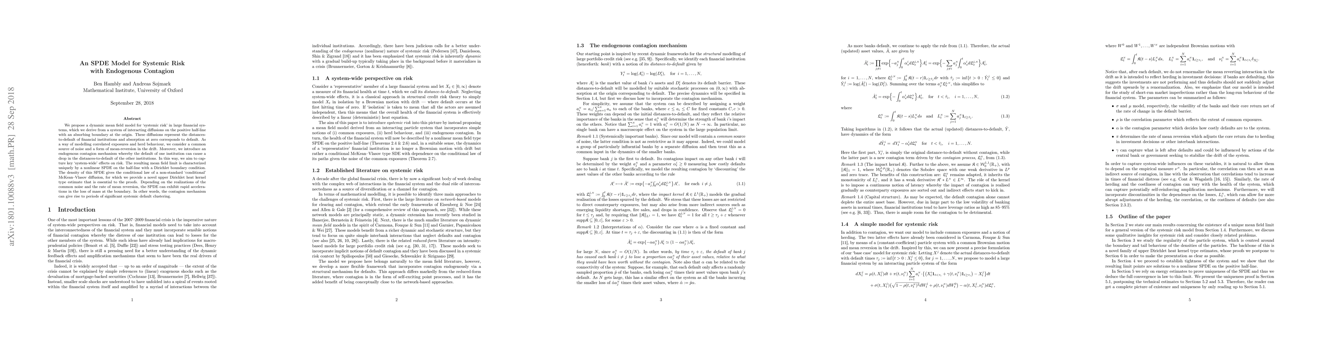 This paper proposes a dynamic mean field model for systemic risk in financial systems using a system of interacting diffusions. It introduces an endogenous contagion mechanism that can lead to rapid systemic default clustering, characterized by a nonlinear SPDE with a Dirichlet boundary condition.