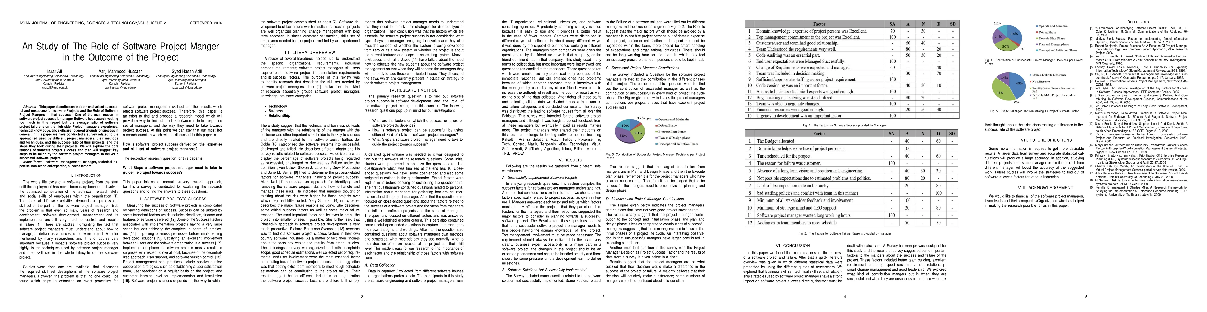 This paper analyzes the impact of software project managers' experience, techniques, and skills on project outcomes, revealing that despite significant investment, project failure rates are high. The study suggests key steps for project managers to improve success rates based on surveyed methods and techniques.
