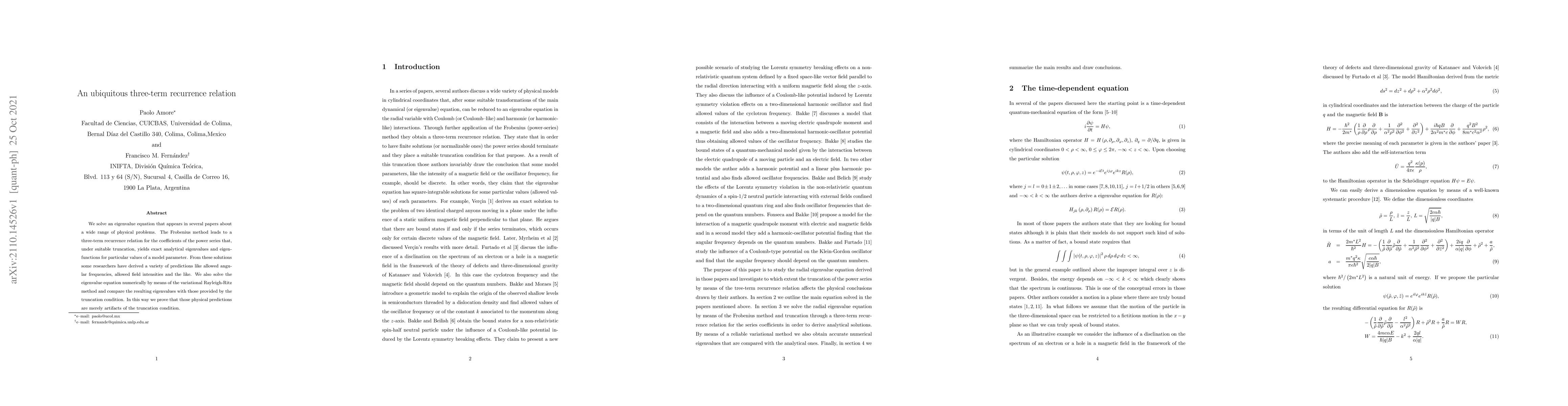 We solve an eigenvalue equation that appears in several papers about a wide range of physical problems. The Frobenius method leads to a three-term recurrence relation for the coefficients of the power series that, under suitable truncation, yields exact analytical eigenvalues and eigenfunctions for particular values of a model parameter. From these solutions some researchers have derived a variety of predictions like allowed angular frequencies, allowed field intensities and the like. We also solve the eigenvalue equation numerically by means of the variational Rayleigh-Ritz method and compare the resulting eigenvalues with those provided by the truncation condition. In this way we prove that those physical predictions are merely artifacts of the truncation condition.