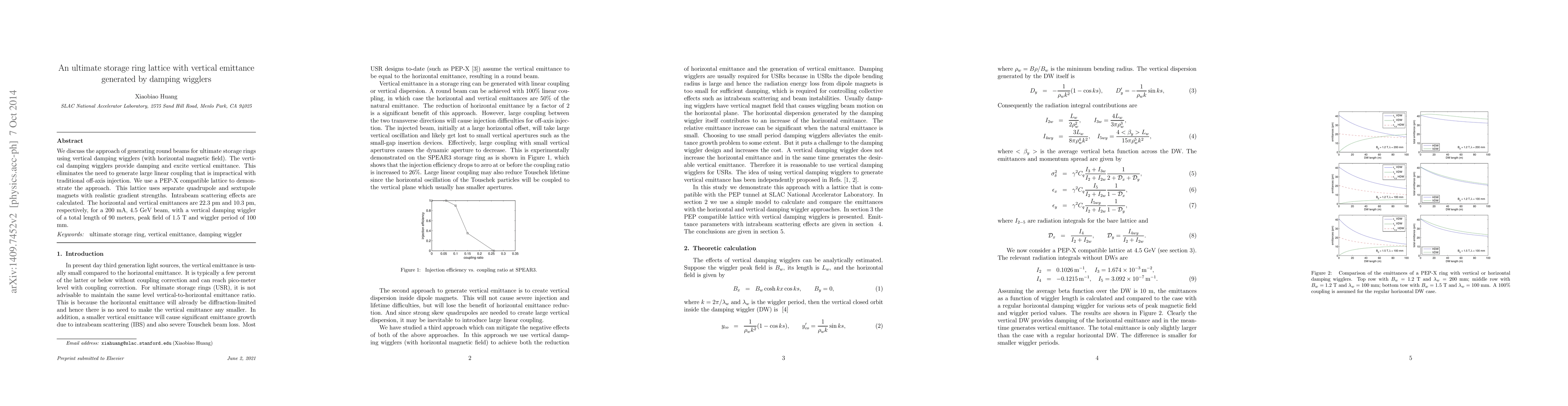 We discuss the approach of generating round beams for ultimate storage rings using vertical damping wigglers (with horizontal magnetic field). The vertical damping wigglers provide damping and excite vertical emittance. This eliminates the need to generate large linear coupling that is impractical with traditional off-axis injection. We use a PEP-X compatible lattice to demonstrate the approach. This lattice uses separate quadrupole and sextupole magnets with realistic gradient strengths. Intrabeam scattering effects are calculated. The horizontal and vertical emittances are 22.3 pm and 10.3 pm, respectively, for a 200 mA, 4.5 GeV beam, with a vertical damping wiggler of a total length of 90 meters, peak field of 1.5 T and wiggler period of 100 mm.