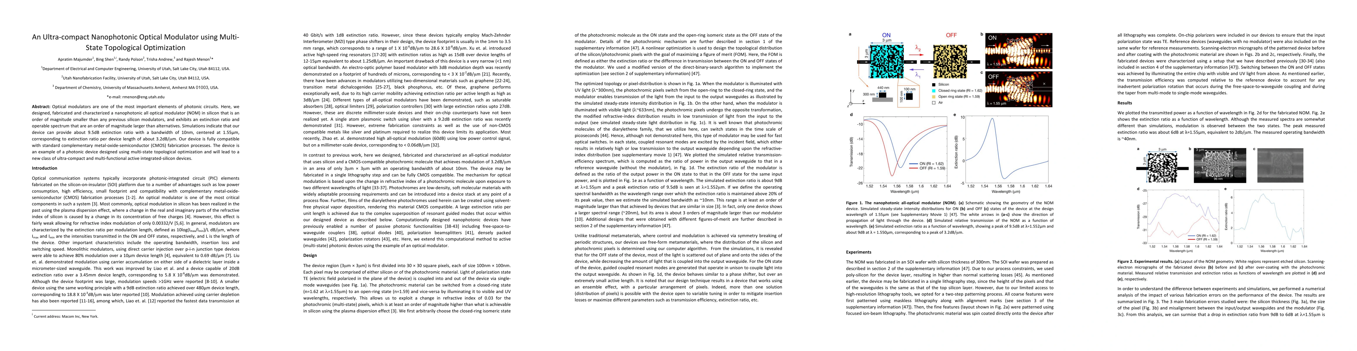 Researchers developed an ultra-compact nanophotonic optical modulator that is 10 times smaller than previous silicon modulators, offering improved extinction ratio and operable spectrum.
