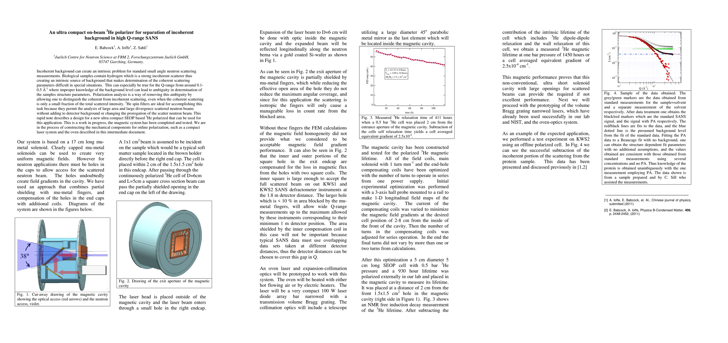 Incoherent background can create an intrinsic problem for standard small angle neutron scattering measurements. Biological samples contain hydrogen which is a strong incoherent scatterer thus creating an intrinsic source of background that makes determination of the coherent scattering parameters difficult in special situations. This can especially be true for the Q-range from around 0.1-0.5 {\AA}-1 where improper knowledge of the background level can lead to ambiguity in determination of the samples structure parameters. Polarization analysis is a way of removing this ambiguity by allowing one to distinguish the coherent from incoherent scattering, even when the coherent scattering is only a small fraction of the total scattered intensity. 3He spin filters are ideal for accomplishing this task because they permit the analysis of large area and large divergence scattered neutron beams without adding to detector background or changing the prorogation of the scatter neutron beam. This rapid note describes a design for a new ultra compact SEOP based 3He polarized that can be used for this application. This is a work in progress, the magnetic system has been completed and tested. We are in the process of constructing the mechanical components for online polarization, such as a compact laser system and the oven described in this intermediate document.