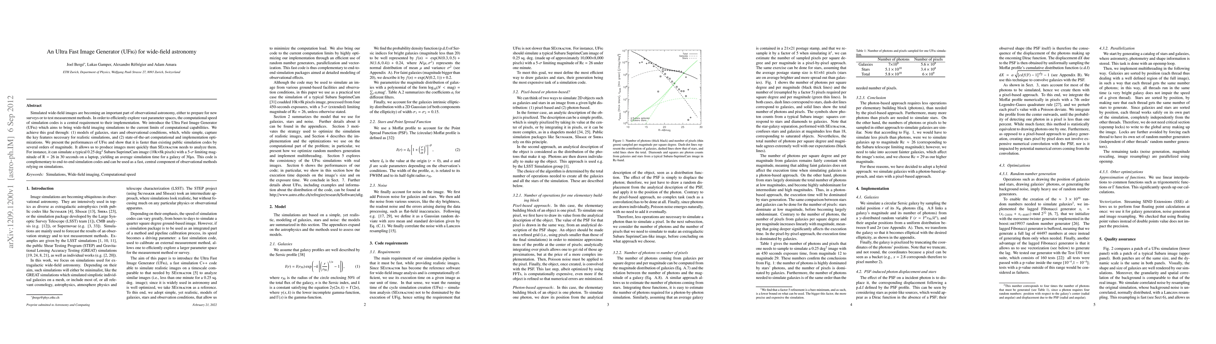 The Ultra Fast Image Generator (UFig) is a highly optimized simulation code designed to rapidly produce wide-field astronomical images, achieving speeds several orders of magnitude faster than existing tools. It employs simplified yet realistic models and advanced computational techniques to simulate images quickly, enabling efficient exploration of vast parameter spaces in observational astronomy.
