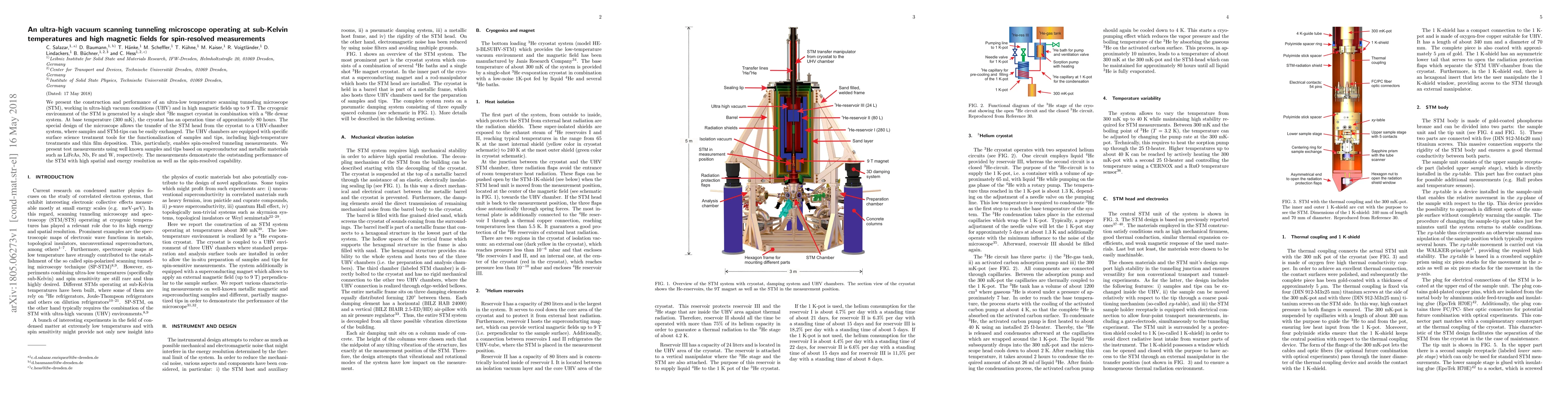 This paper details the construction of an ultra-high vacuum scanning tunneling microscope operating at sub-Kelvin temperatures and high magnetic fields, enabling spin-resolved measurements. The microscope features a $^3$He magnet cryostat and UHV chambers for sample and tip exchange, demonstrating high spatial and energy resolution.